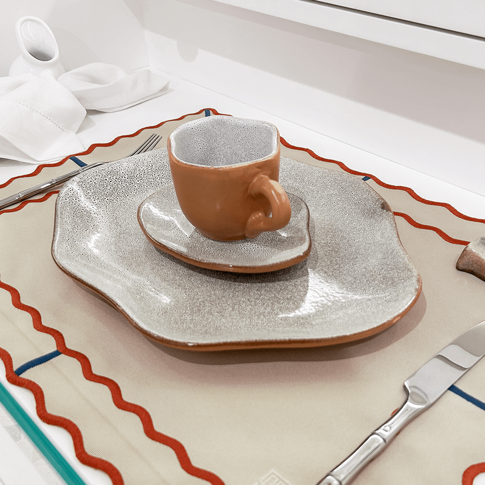 JOGO AMERICANO EASY CLEAN ELLA BRANCO E TERRACOTA