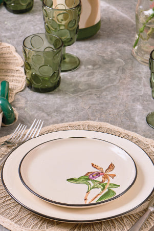 O Set de Pratos Flores Raras carrega a delicadeza de um toque único. A cerâmica ganha alma com desenhos exclusivos das flores mais raras e únicas, feitos à mão com cuidado, transformando cada refeição em um momento especial e cheio de beleza.