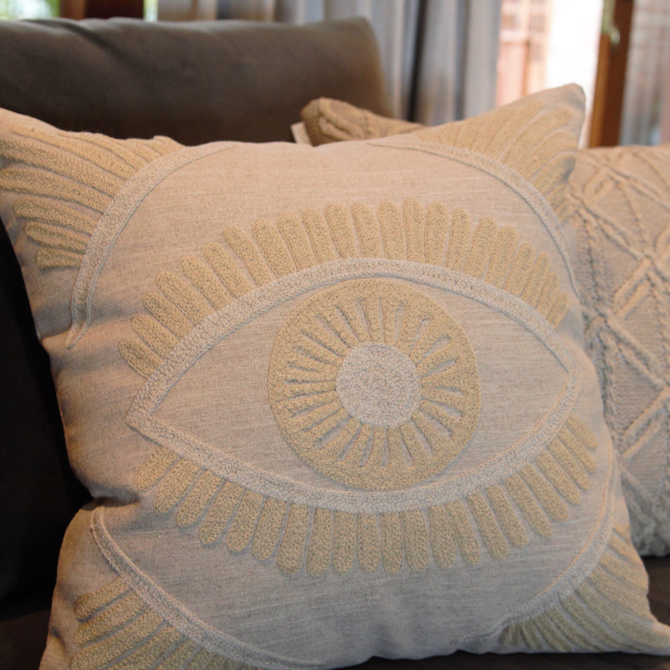 A almofada Eye tem um bordado diferente e super especial. Em 3 tons neutros ela entra facilmente em todos os estilos de decoração e dá um toque contemporâneo e divertido ao espaço!