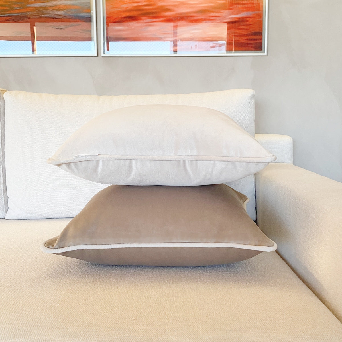 CAPA DE ALMOFADA DE VELUDO LINES NEUTRA COM VIVO MARFIM 50X50 CM - BEGE
