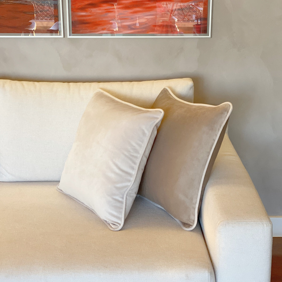 Nossa almofada de Veludo Lines Neutra é um verdadeiro coringa! Disponíveis nas três cores mais neutras da decoração: bege, marfim e cinza, todas com acabamento do vivo marfim.