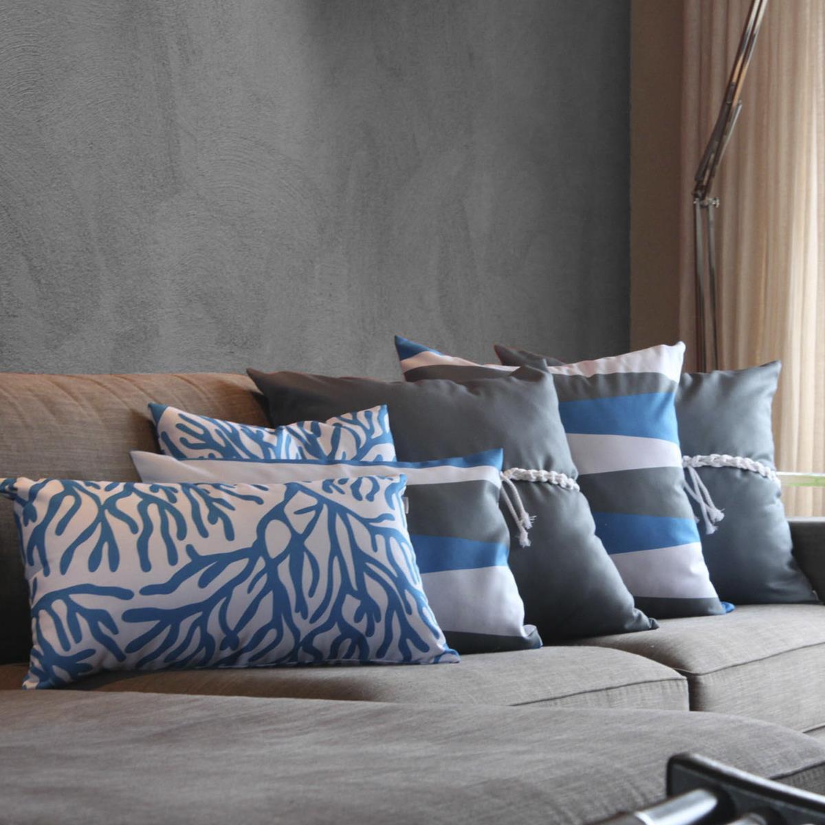 Para um ambiente mais neutro, misture sua almofada Geométrica a almofadas e mantas de cores neutras como o cinza e o bege.