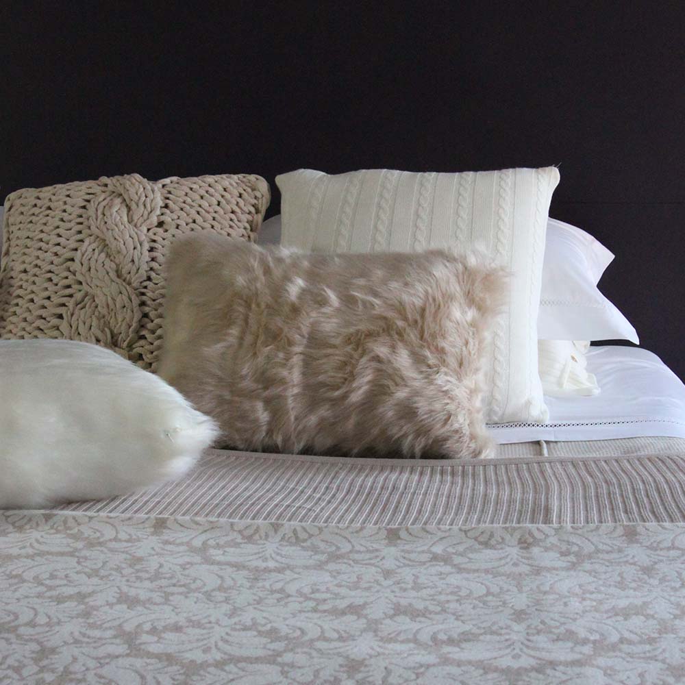 Exótica e linda, a linha Tallinn é ideal para criar um clima luxuoso no quarto ou na sala.<br><br> Com toque extremamente macio e aveludado, sem aparência de pele sintética, as Almofadas Tallin dão um toque contemporâneo a qualquer décor.<br><br> Os tons neutros permitem que você brinque com almofadas coloridas e com outros tipos de textura.<br><br> Deixe o look completo com as mantas da mesma linha.