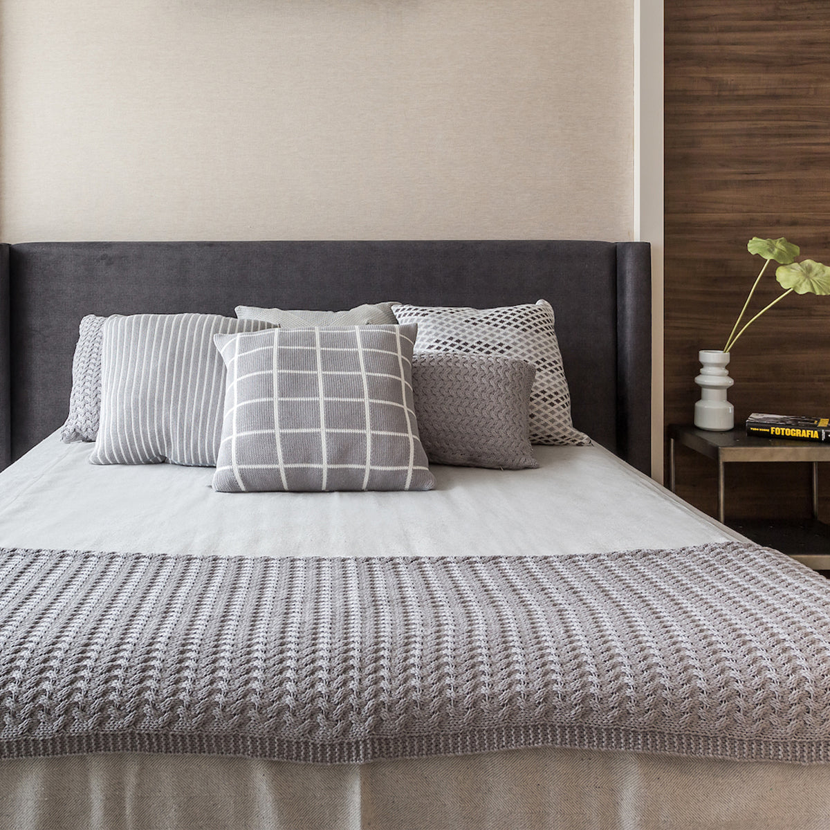 O tricot é tão bem trabalhado que parece ter sido feito à mão, e por conta do algodão na composição do fio, a peça fica com um toque super macio e deixa os ambientes muito mais aconchegantes, então quanto mais almofadas, melhor!