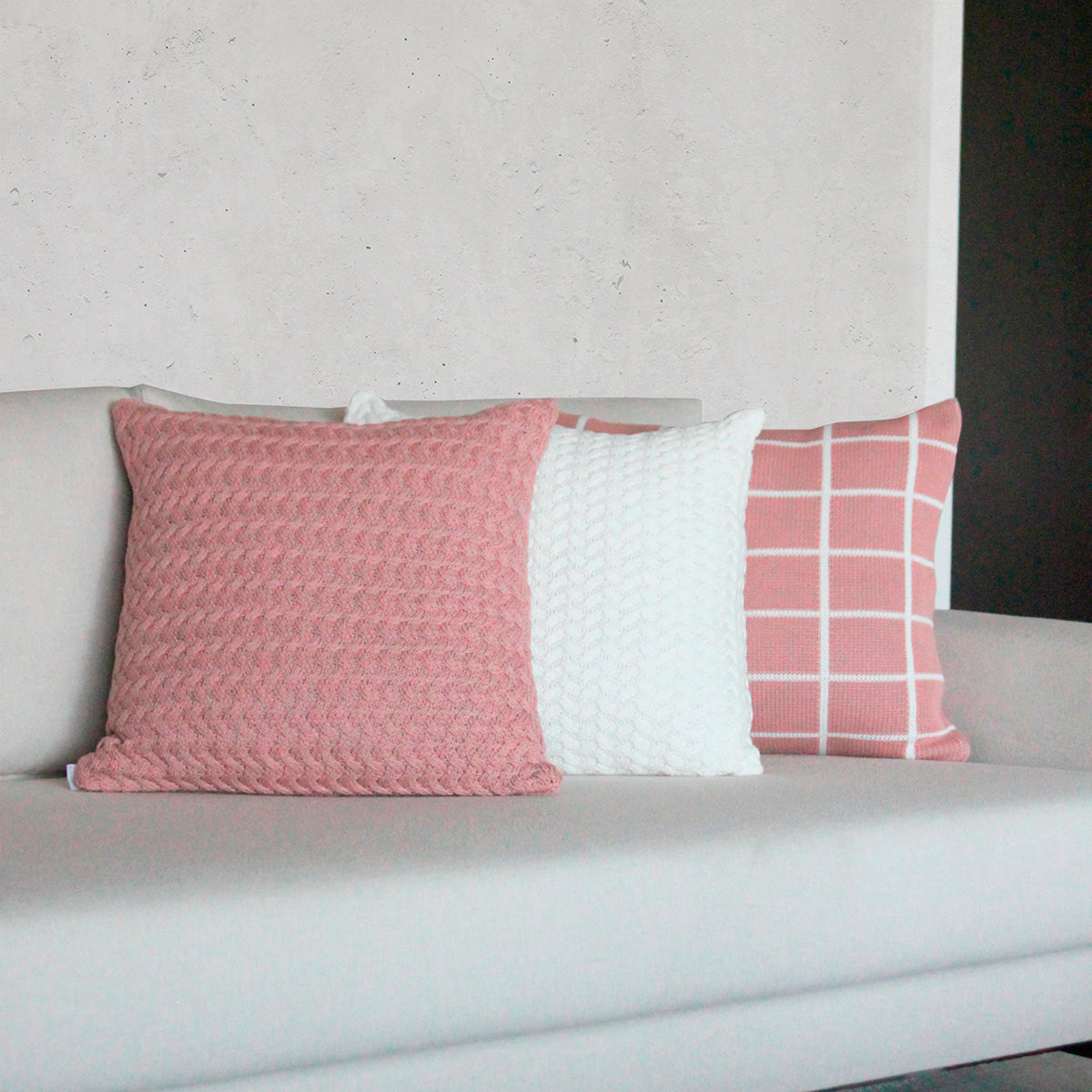 CAPA DE ALMOFADA TRICOT PLUS GRID ROSA 50X50 CM