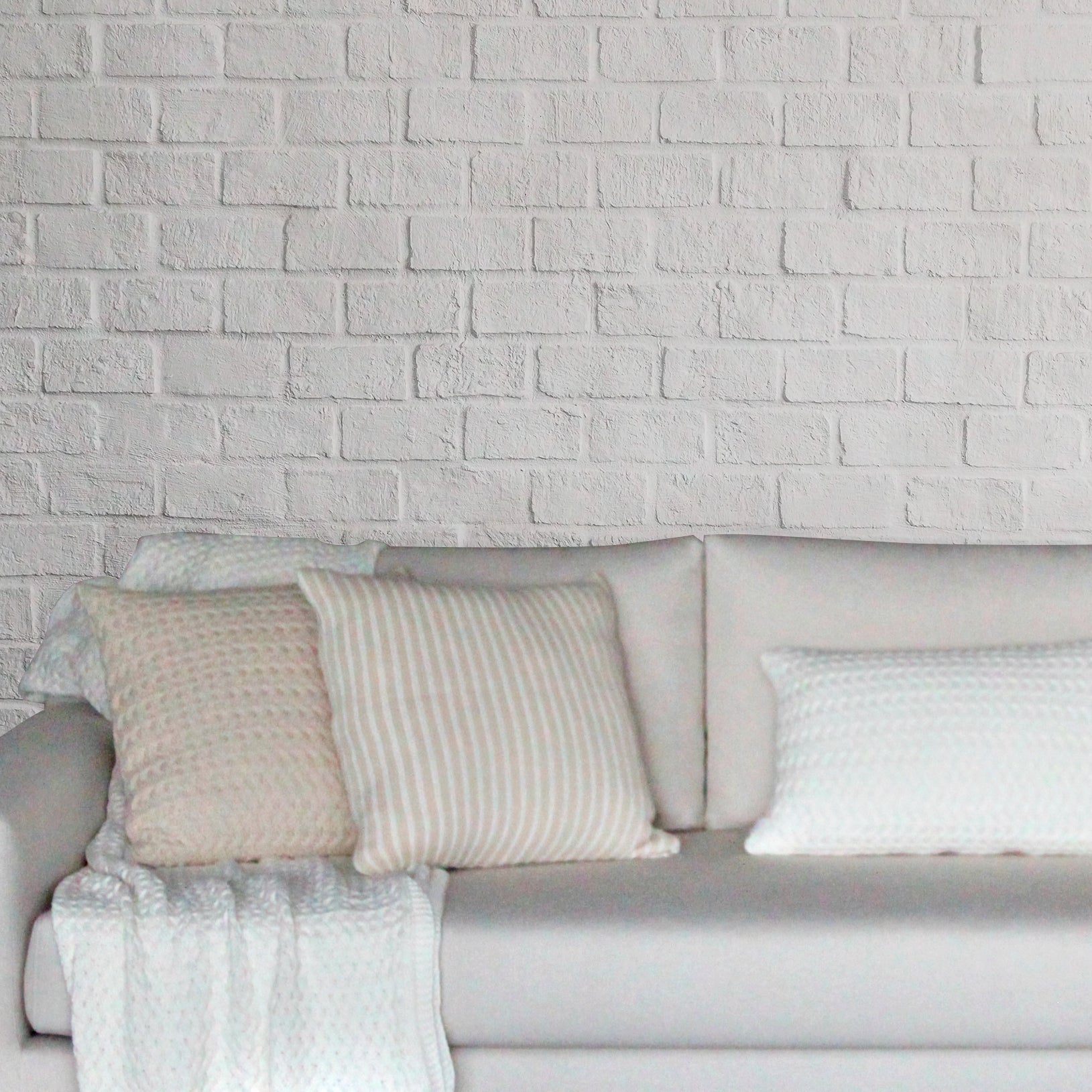 Combine a almofada Tricot Plus Risca de Giz com a almofada Grid e outras almofadas lisas nos mesmos tons. Não esqueça da mantinha de tricot para completar a composição!