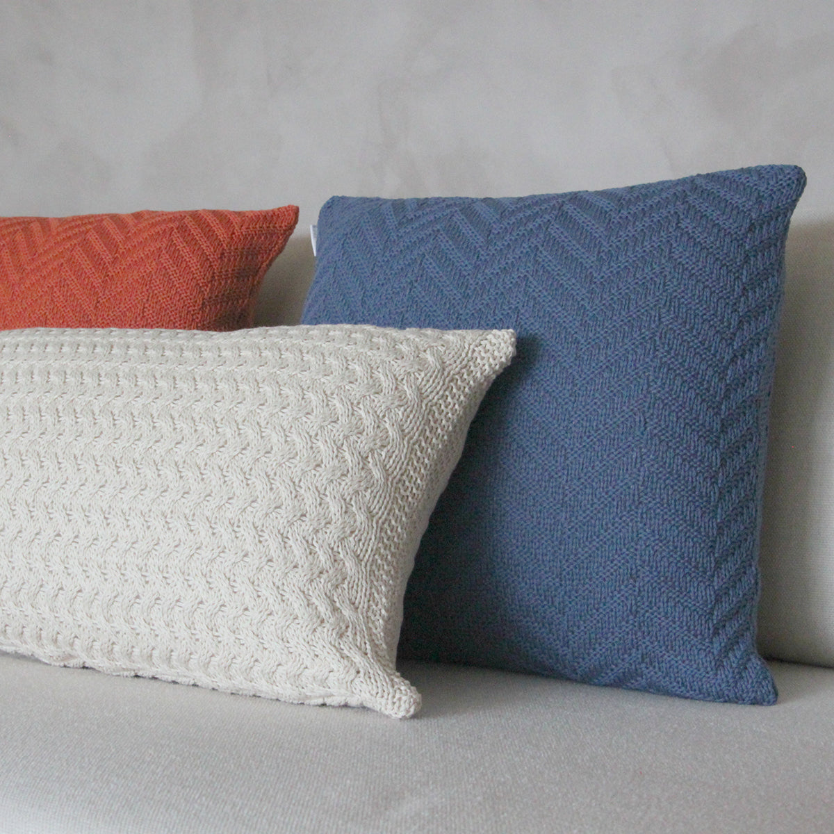 As almofadas de tricot já são um must have do decor! O toque macio e suave do algodão, permite que elas sejam usadas em todas as estações do ano!
