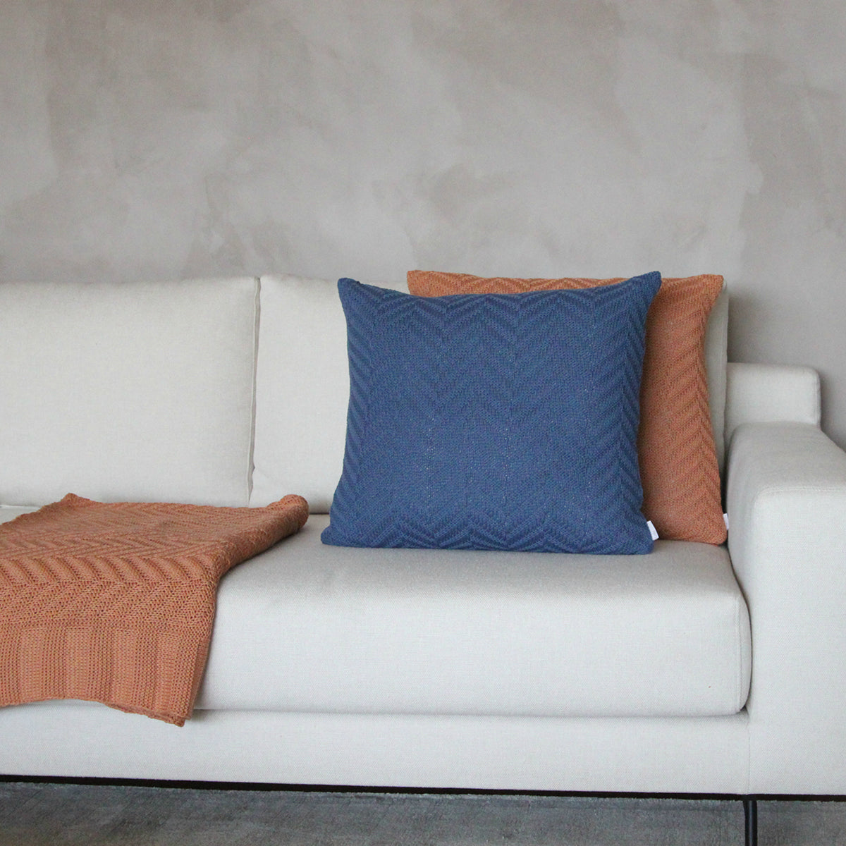 CAPA DE ALMOFADA TRICOT PLUS ZIGZAG AZUL 50 X 50 CM