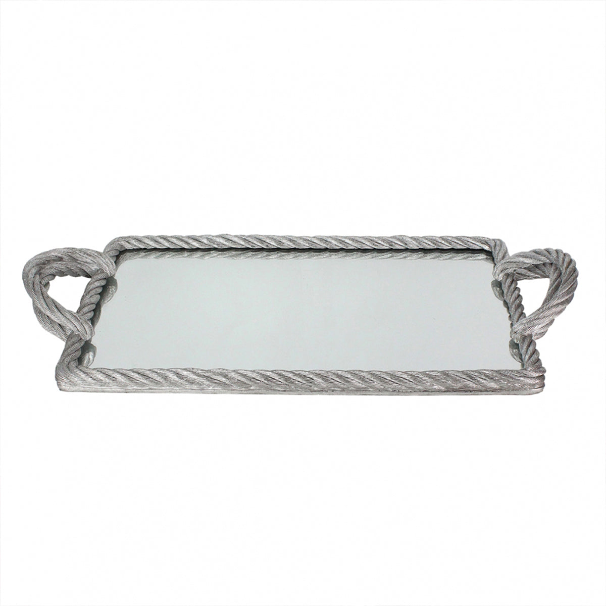 BANDEJA COM ESPELHO CORDA PRATA 52 X 26,5 X 5,5 CM