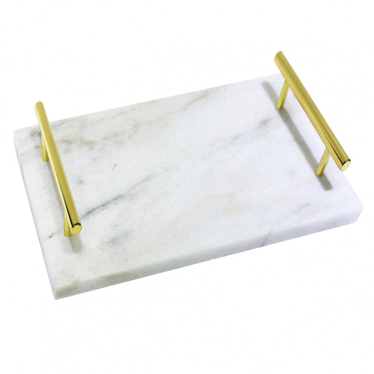BANDEJA DE MÁRMORE COM ALÇA DOURADA 38 X 27 X 5 CM - MARFIM