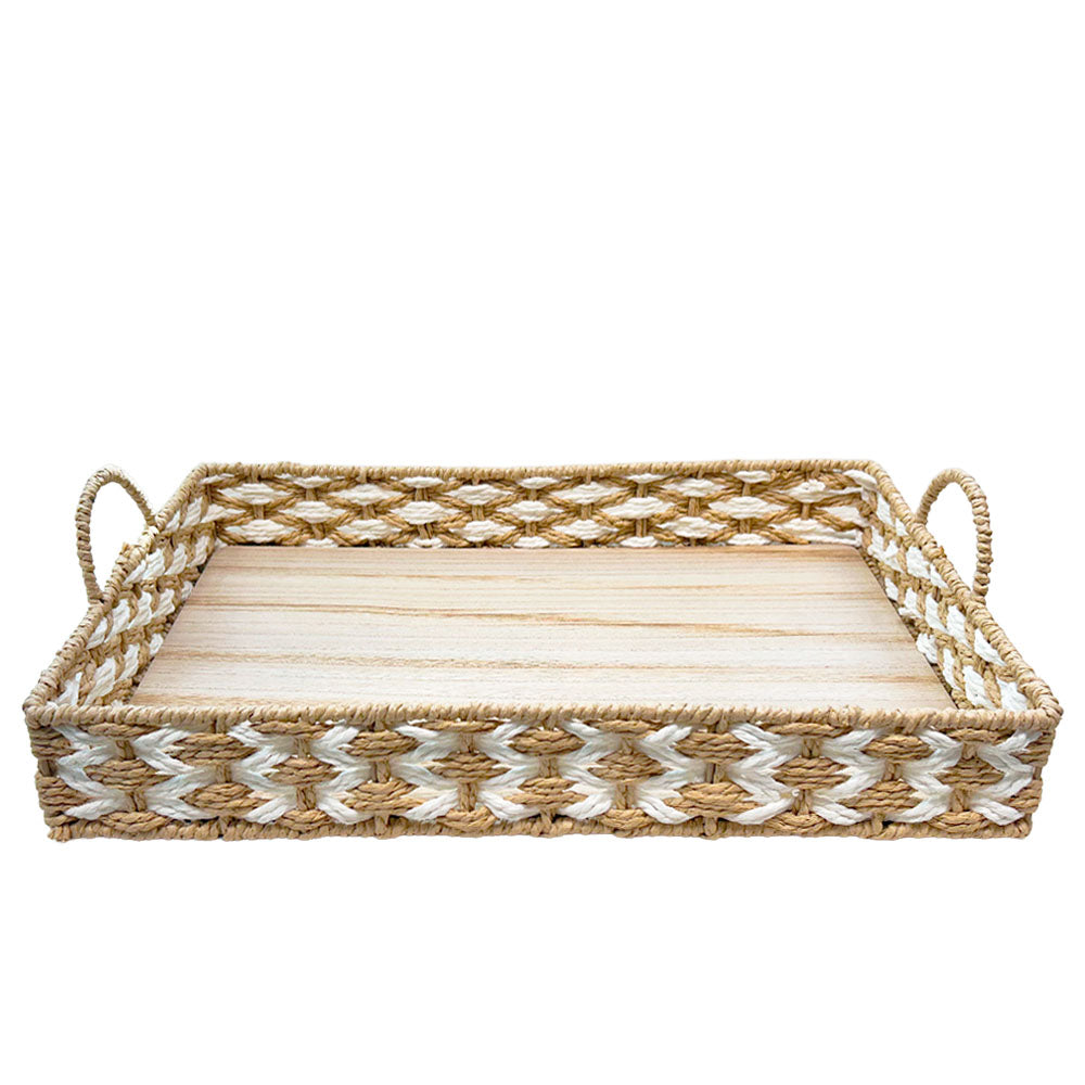 BANDEJA EM MADEIRA PALHA ENTRELACE BEGE G 48X32CM