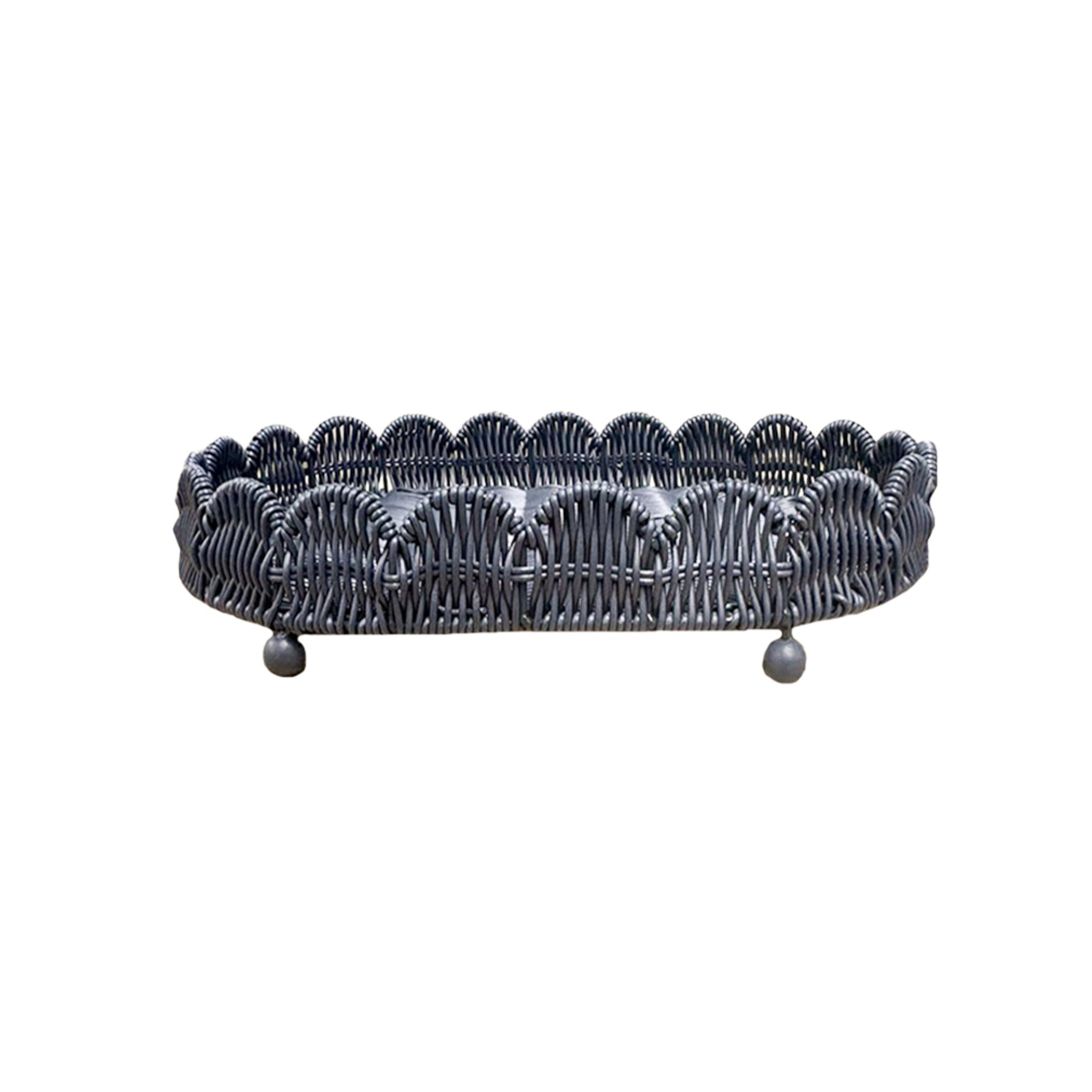 BANDEJA OVAL SCALLOP RÁIZES EM FIBRA AZUL M