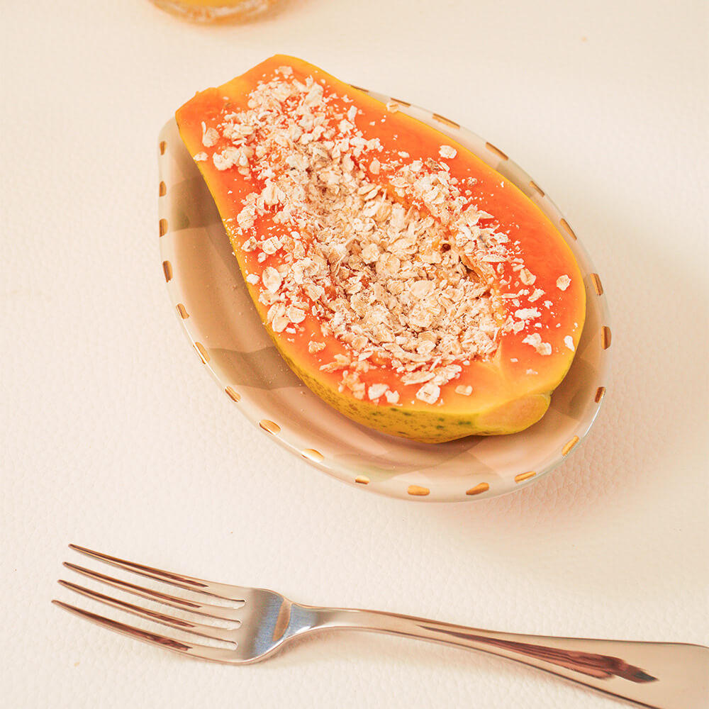 Deixe sua mesa de café da manhã surpreendente com nosso Bowl de Cerâmica em Formato de Mamão, que é puro charme e originalidade. Esqueça o básico, porque este bowl tem um toque suve e chic de verde, com uma padronagem xadrez super estilosa com detalhes em ouro que são a cereja do bolo. Perfeito para quem adora misturar praticidade com uma pitada de glamour no dia a dia.