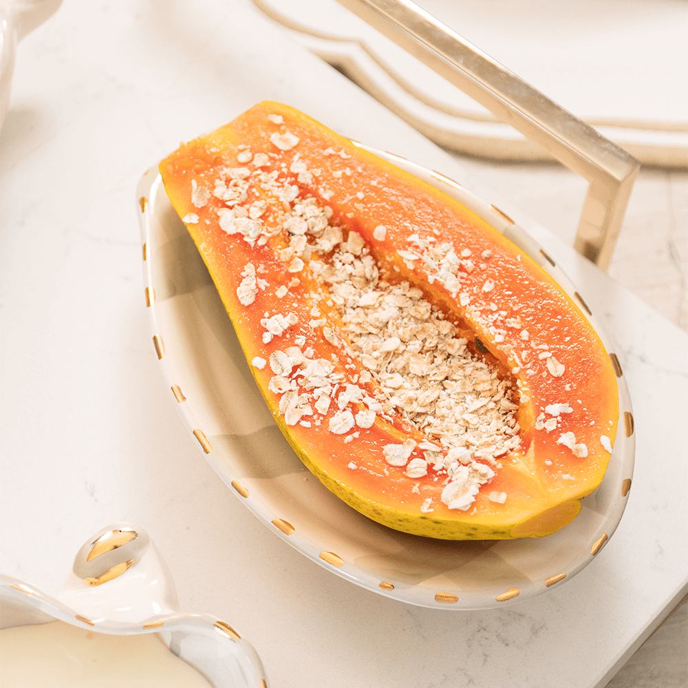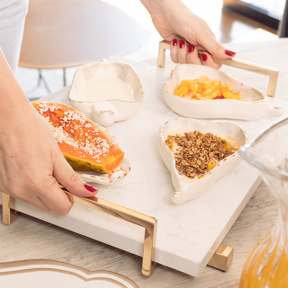 Sirva o próprio mamão, ou então uma salada de frutas, iogurte, geleia, ou o que sua criatividade permitir. Comece o dia com uma mesa linda e cheia de estudo. Coordene os outros bowls de frutas da mesma linha e prepare-se para servir suas delícias com uma dose extra de personalidade!