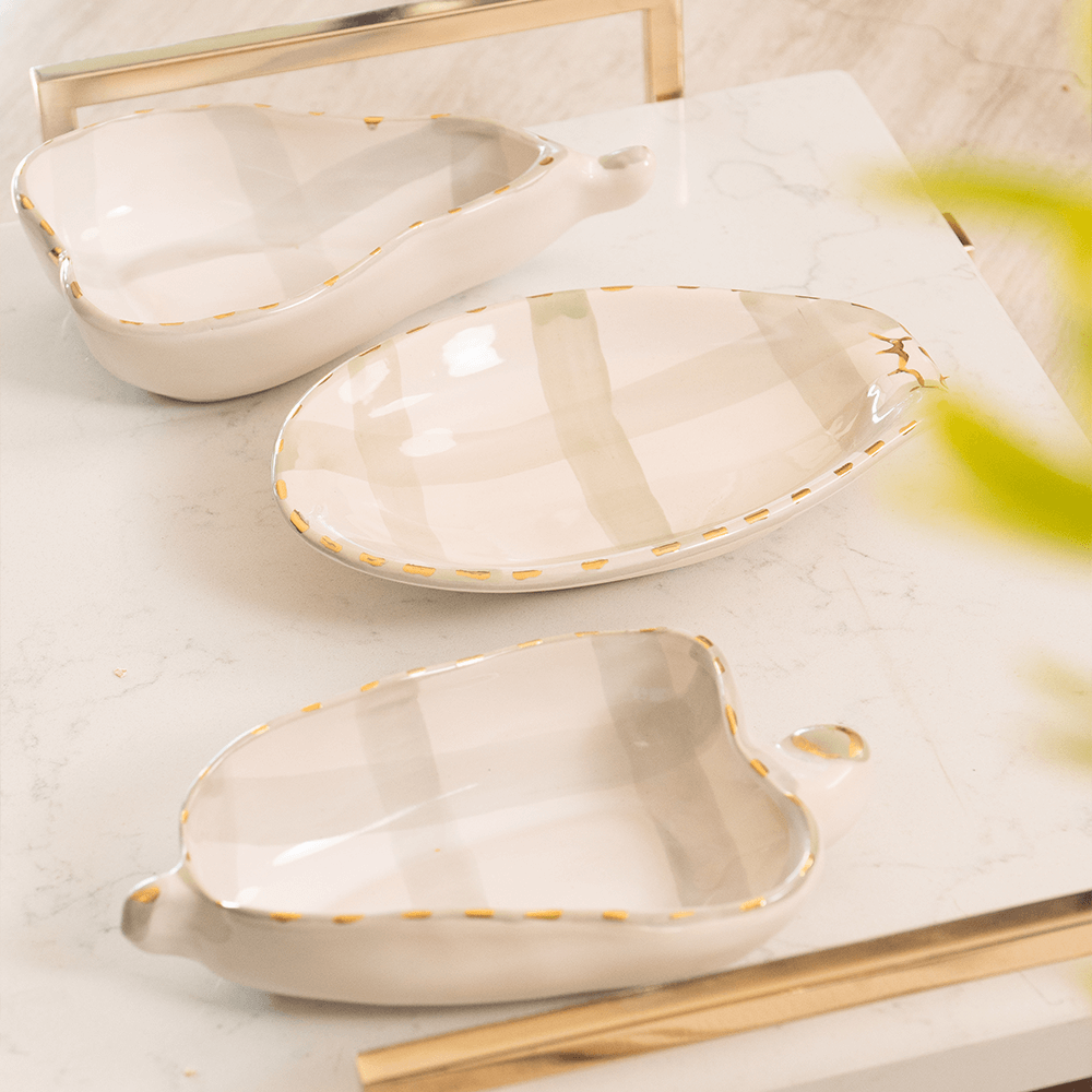 Bowl Cerâmica Artesanal Mamão Verde e Ouro