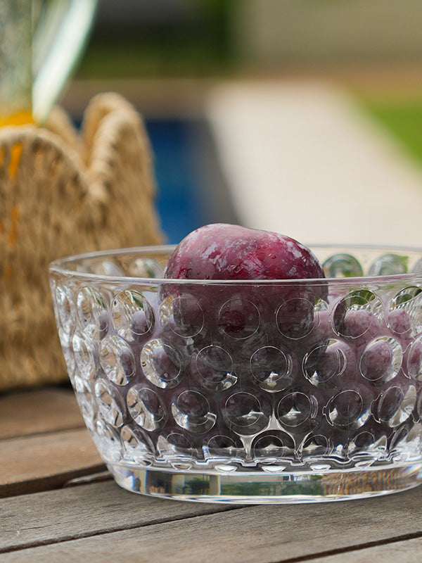 Versátil e com um design atemporal, o bowl de acrílico luna transparente é a peça perfeita para adicionar um toque de elegância e funcionalidade à sua mesa. Com detalhes em relevo que criam um visual sofisticado, ele é ideal para servir e organizar com muito charme.