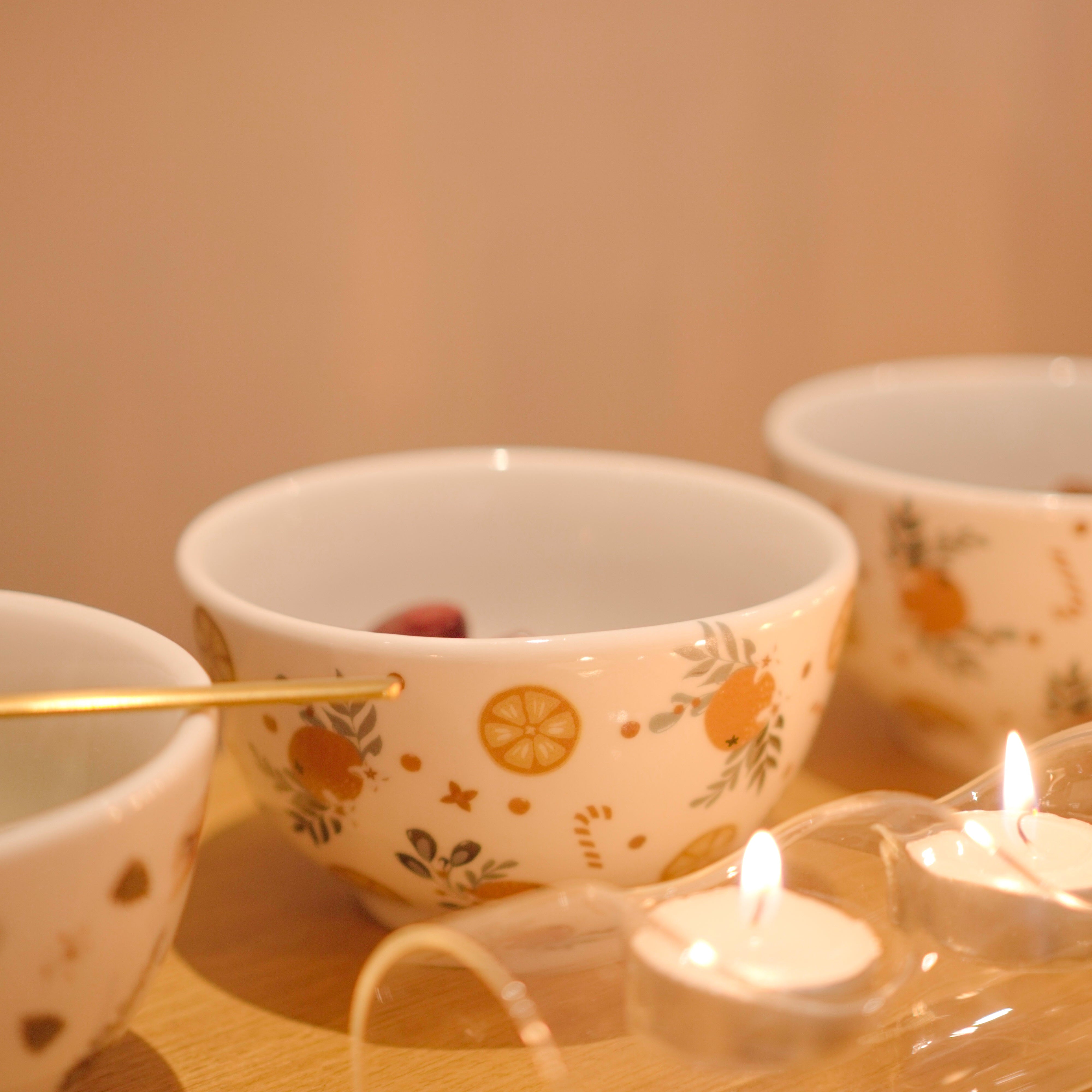 O Bowl de porcelana flor de laranjeira é o item indispensável para sua mesa do almoço de natal, com uma estampa composta por laranjas e suas flores, azevinhos e bengalas de natal, além de linda é carregada de significados e amor, paz e proteção, com muita leveza e delicadeza.