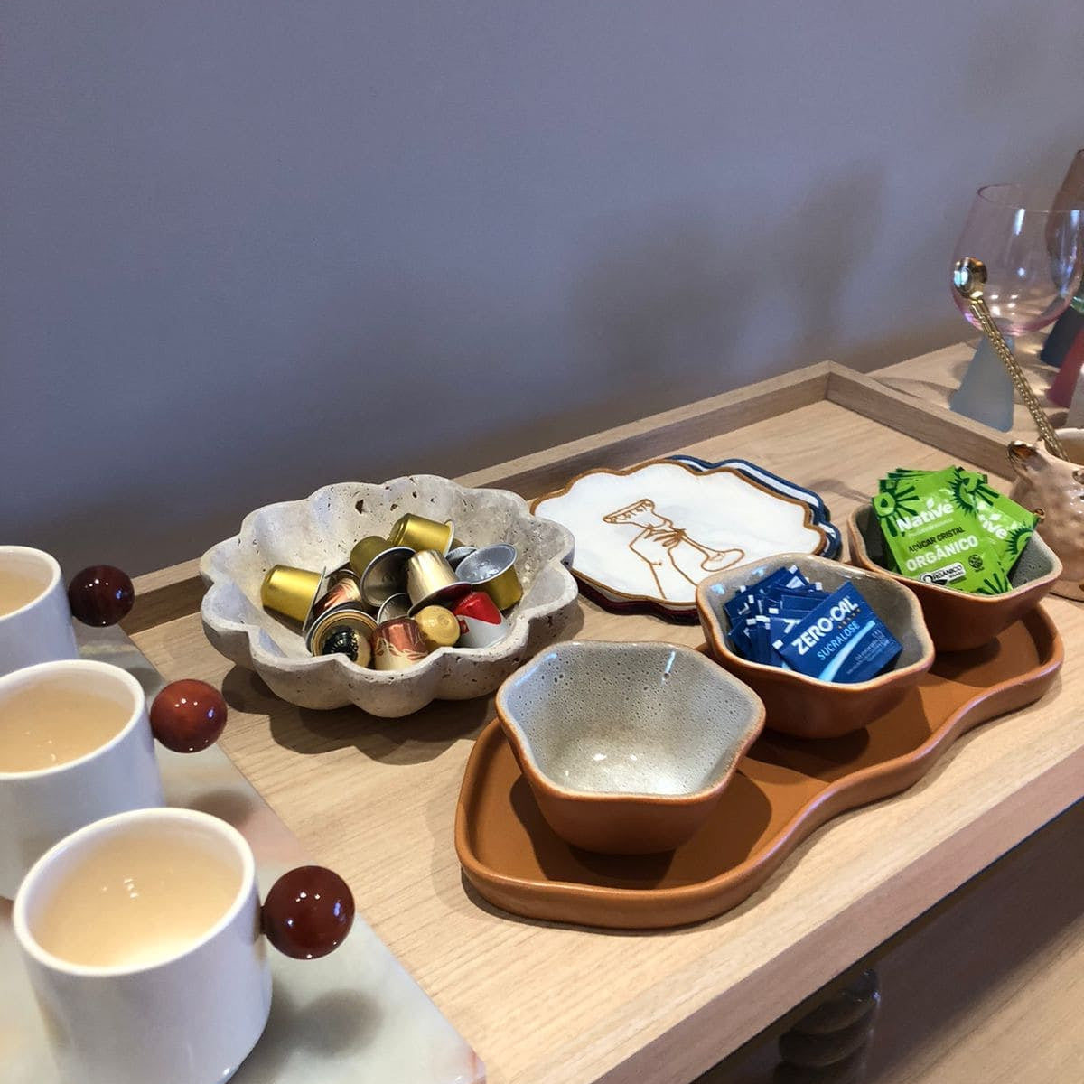 - Adicione um bowl como este no lavabo para apoiar sabonetes em barra ou toalhas de rosto.