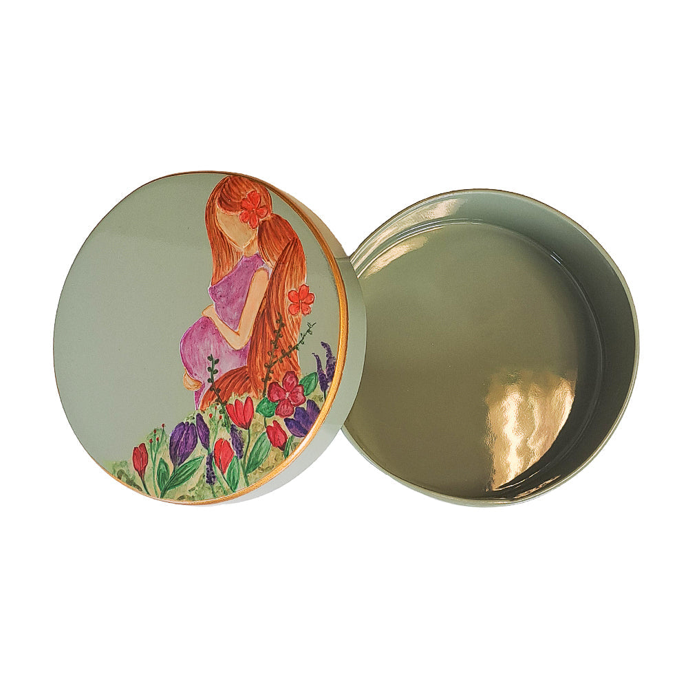 CAIXA PINTADA À MÃO GRÁVIDA VERDE P