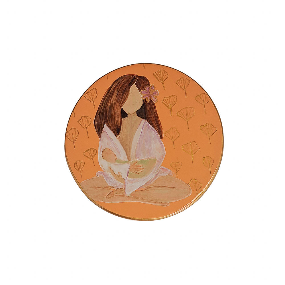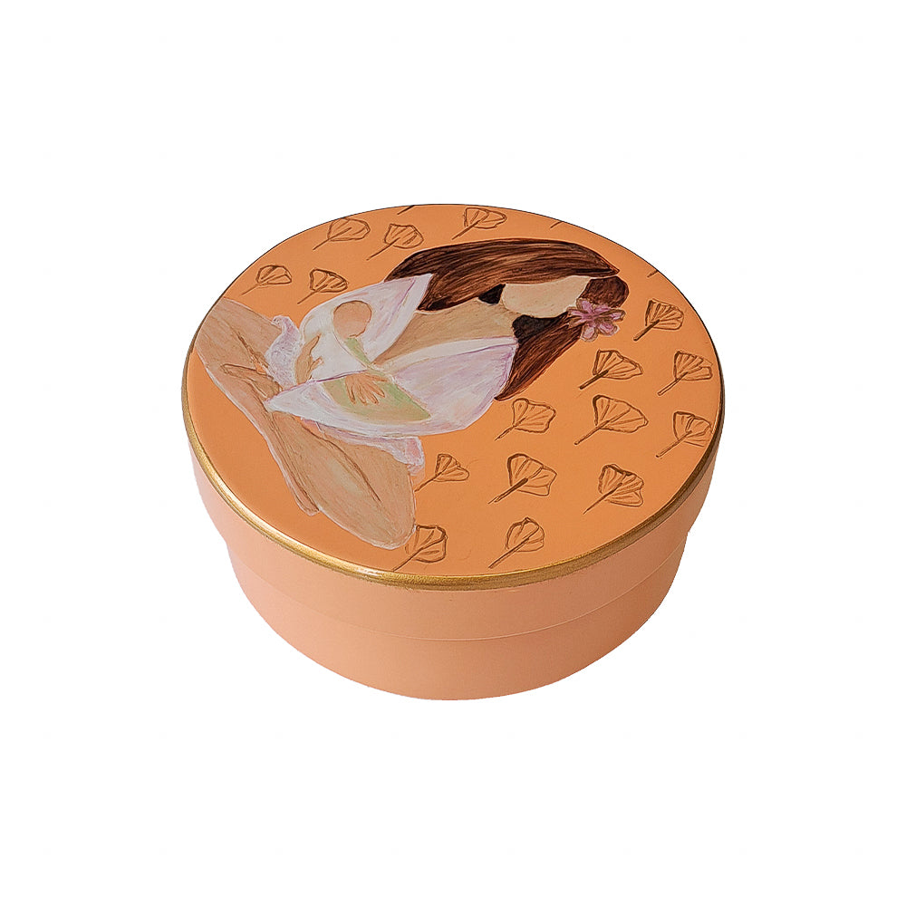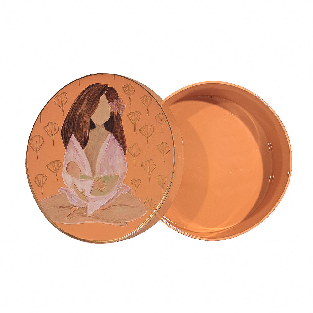 CAIXA PINTADA À MÃO MÃE BEBE LARANJA P