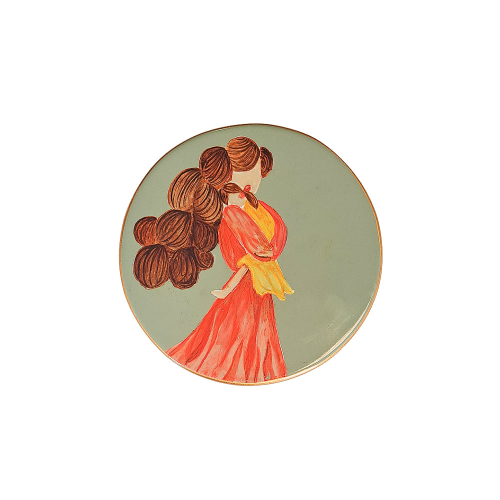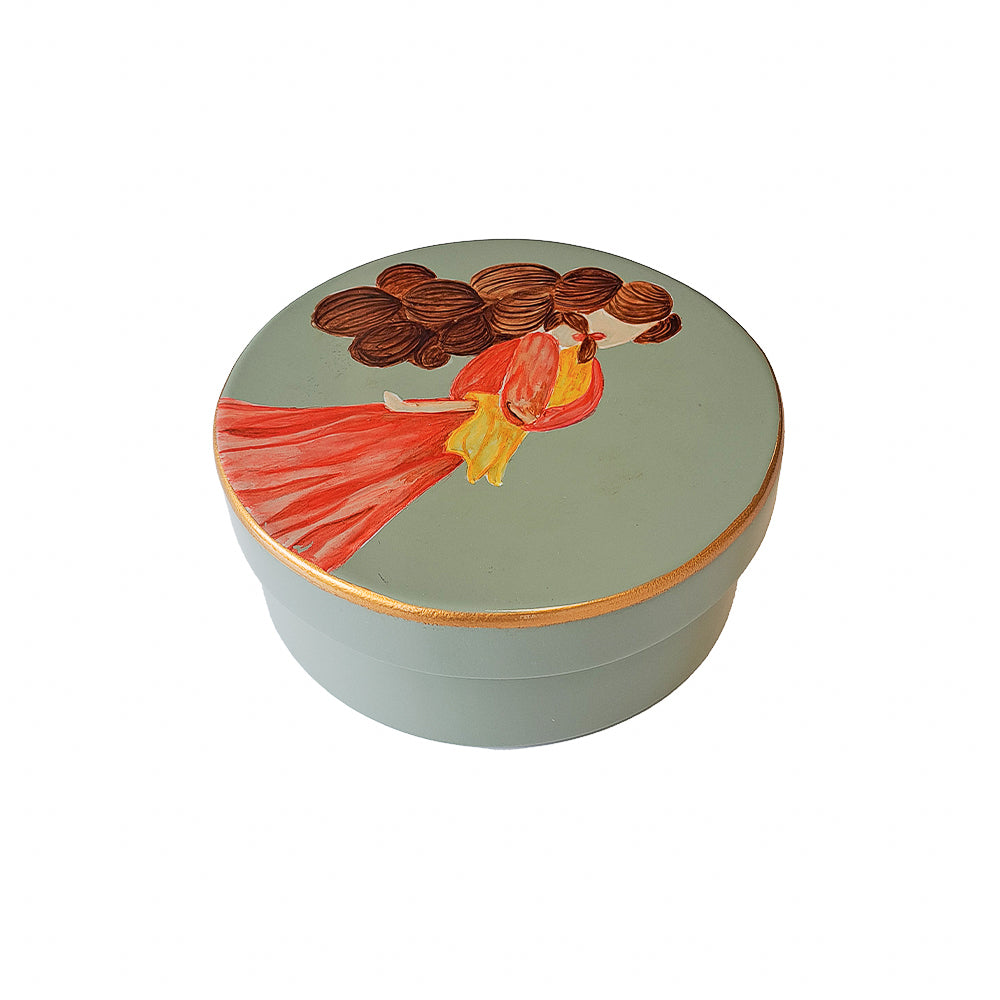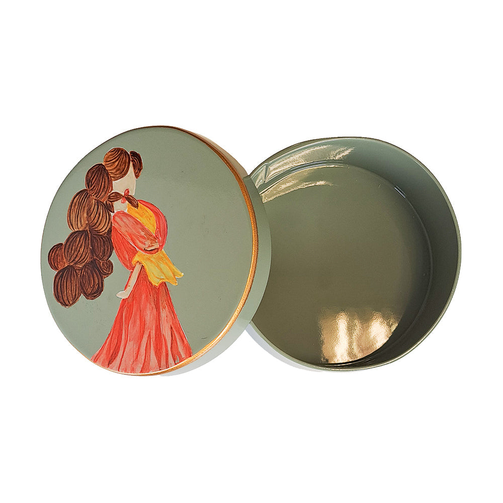 CAIXA PINTADA À MÃO MÃE E MENINA VERDE P