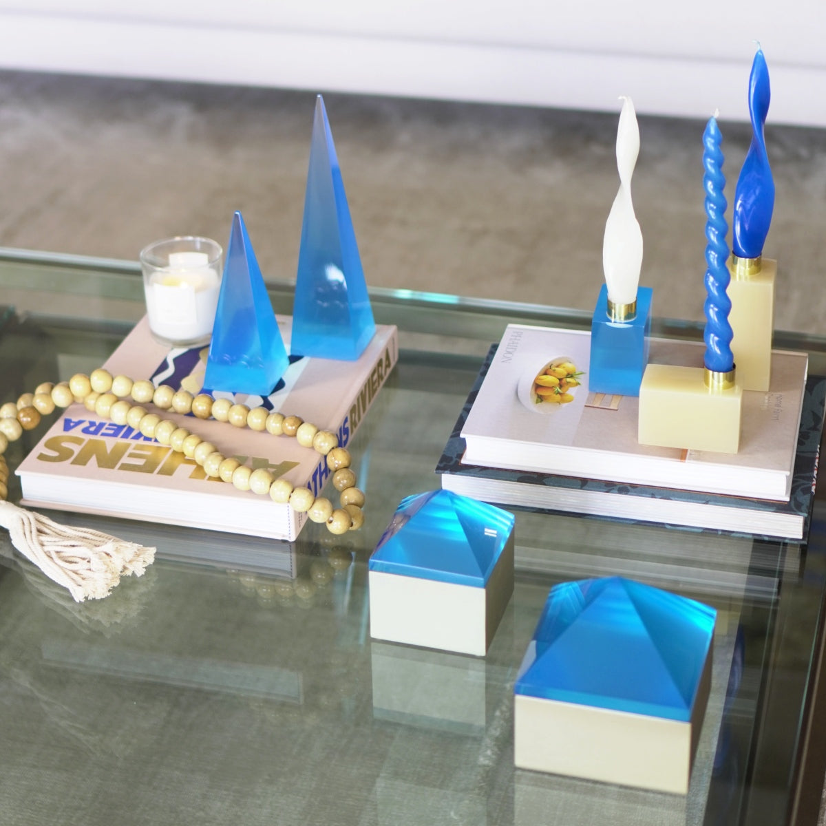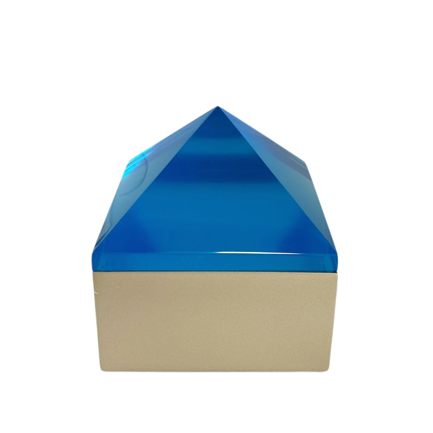 Na hora de decorar, você quer levar para cada ambiente sua personalidade e estilo, para isso trouxemos uma peça que vai tirar o fôlego, a caixa pirâmide azul, pensada para você que sabe que cada detalhe faz a diferença na hora de decorar. Ela é ideal para colocarmos na mesa de centro junto com algum livro bem diferente e colorido, você pode também combinar com outras peças da nossa coleção de resina, como a caixa pirâmide P, ou então as pirâmides que temos em dois tamanhos, com essa combinação, você terá uma casa super moderna e bonita.