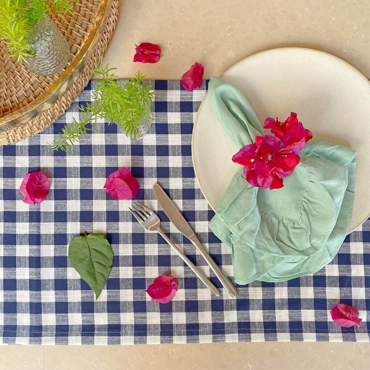 Você pode combiná-lo com o guardanapo de algodão vichy, com guardanapos de tecido liso, ou se você gosta de ousar, pode fazer um mix de estampas com guardanapos estampados nos mesmos tons.