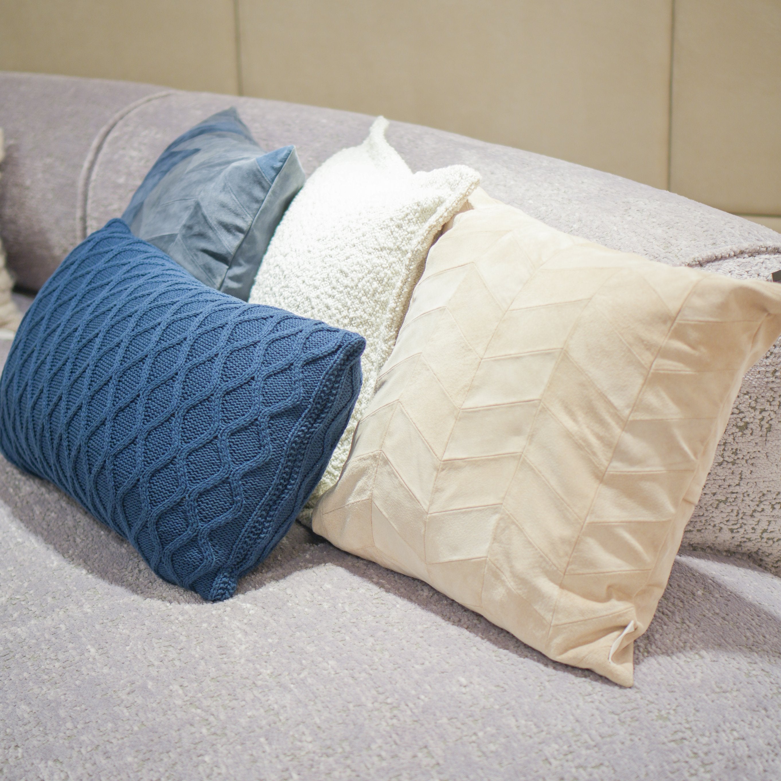 Se sua casa possui uma decoração mais descontraída, aposte em uma combinação da sua almofada Chevron bege com outras almofadas de cores mais fortes, como laranja e azul. Se você prefere algo mais clássico, o caminho é misturar com cores mais sóbrias, como azul marinho e verde escuro. A dica é fazer o mix de textura e optar por outras almofadas de tricô e macramê.