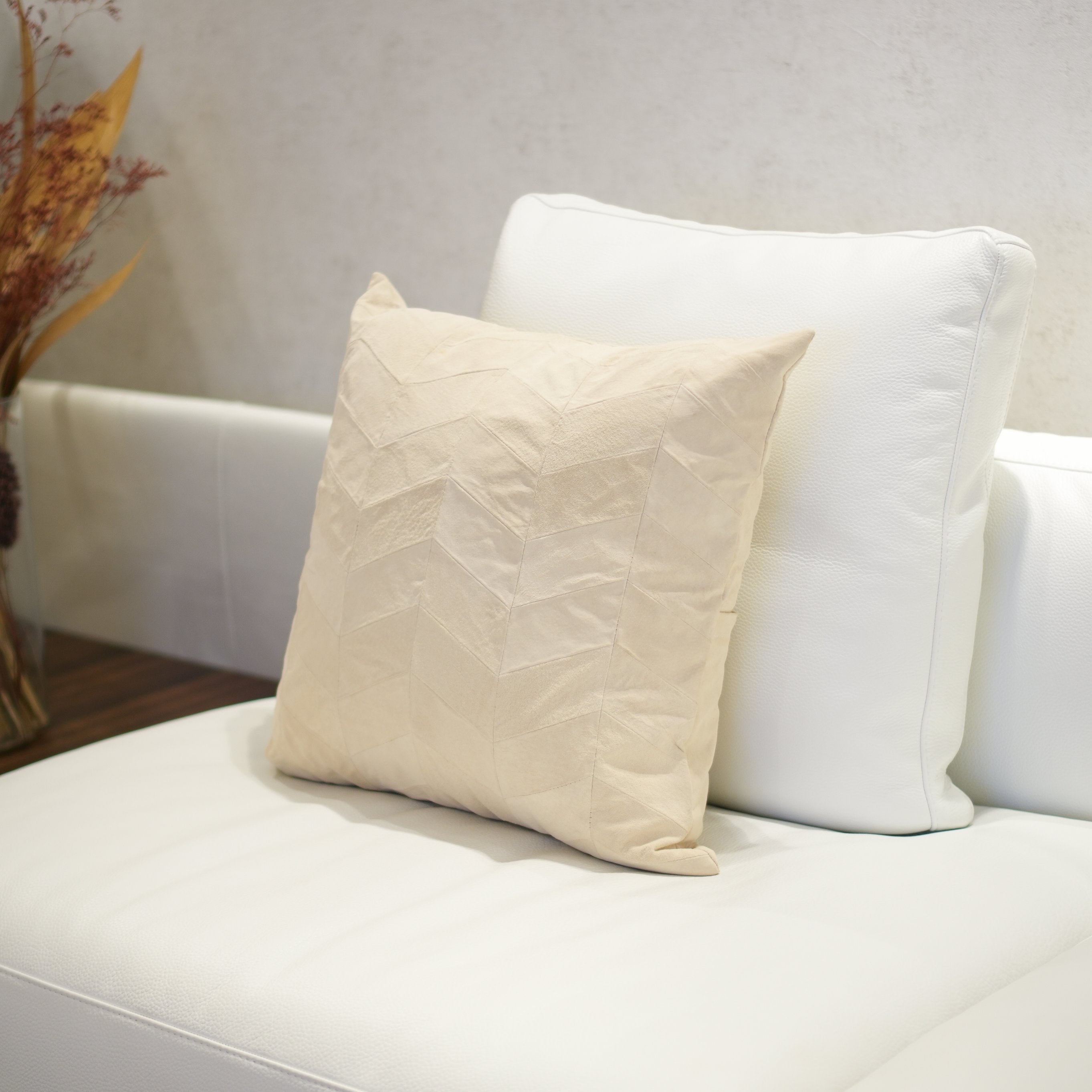 A almofada de couro é um item que agrega vamos e sofisticação para a decoração, já que o couro é uma matéria prima nobre. A almofada de camurça Chevron é ainda mais especial, pois possui essa padronagem clássica e vem em um tom de bege que vai se adequar em diversas composições.