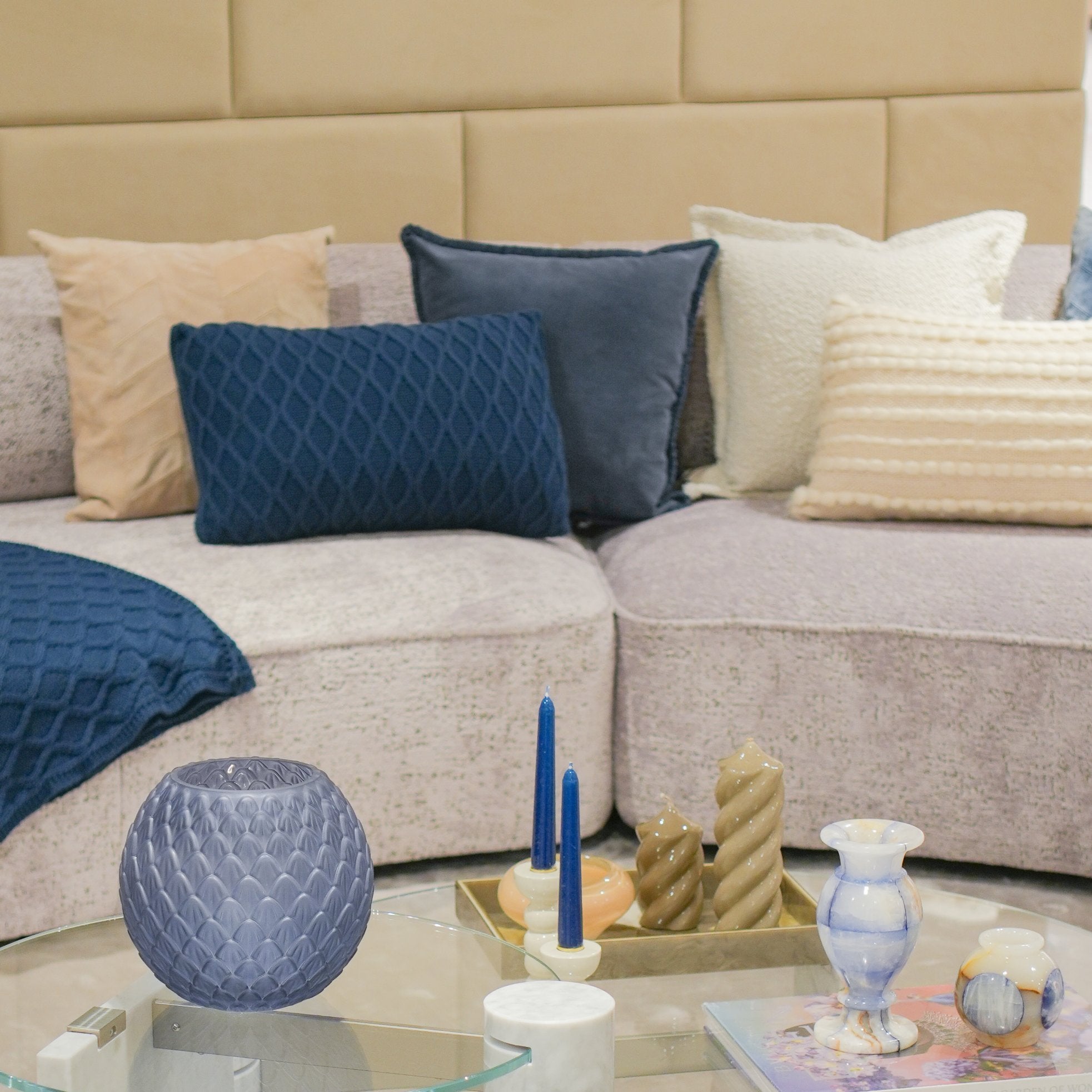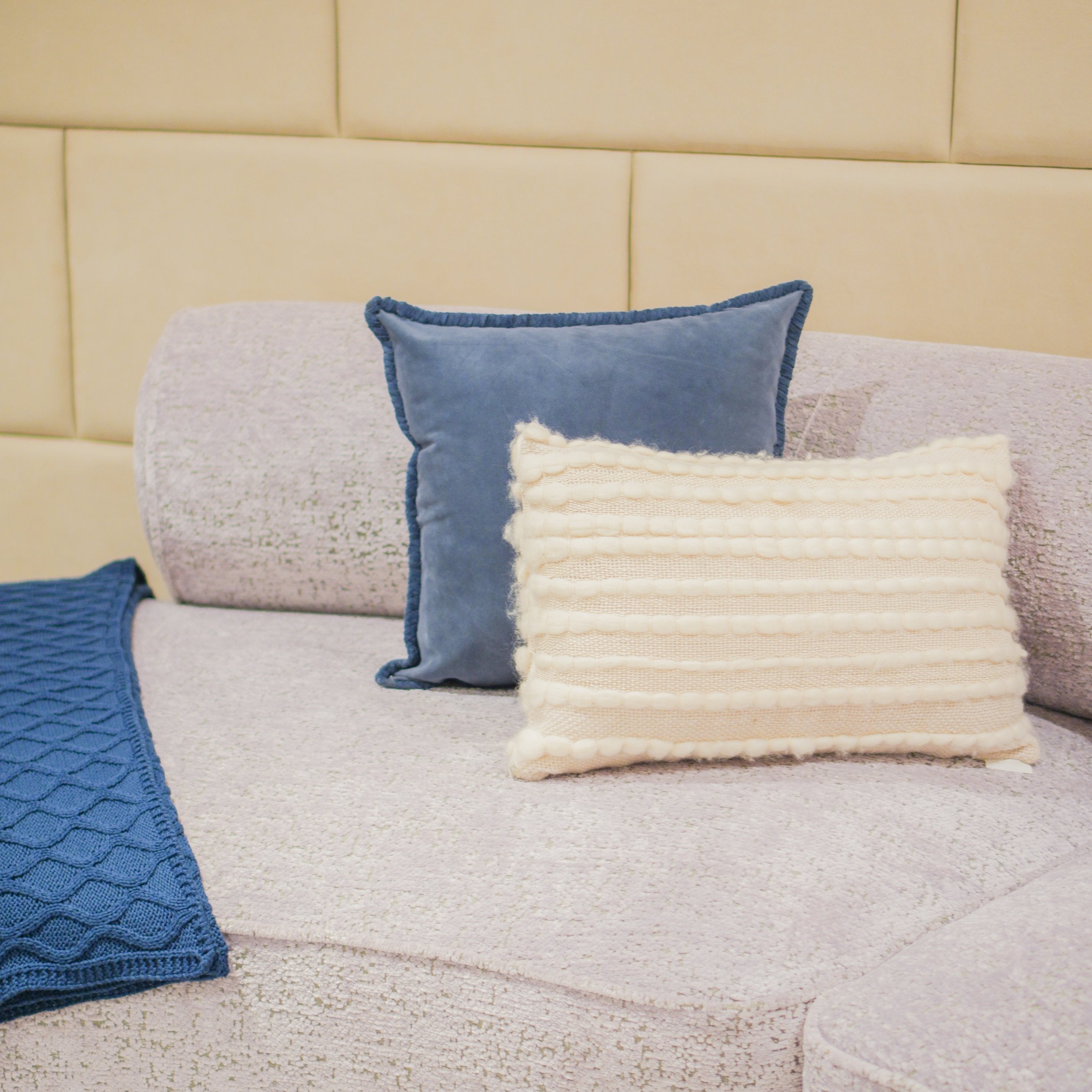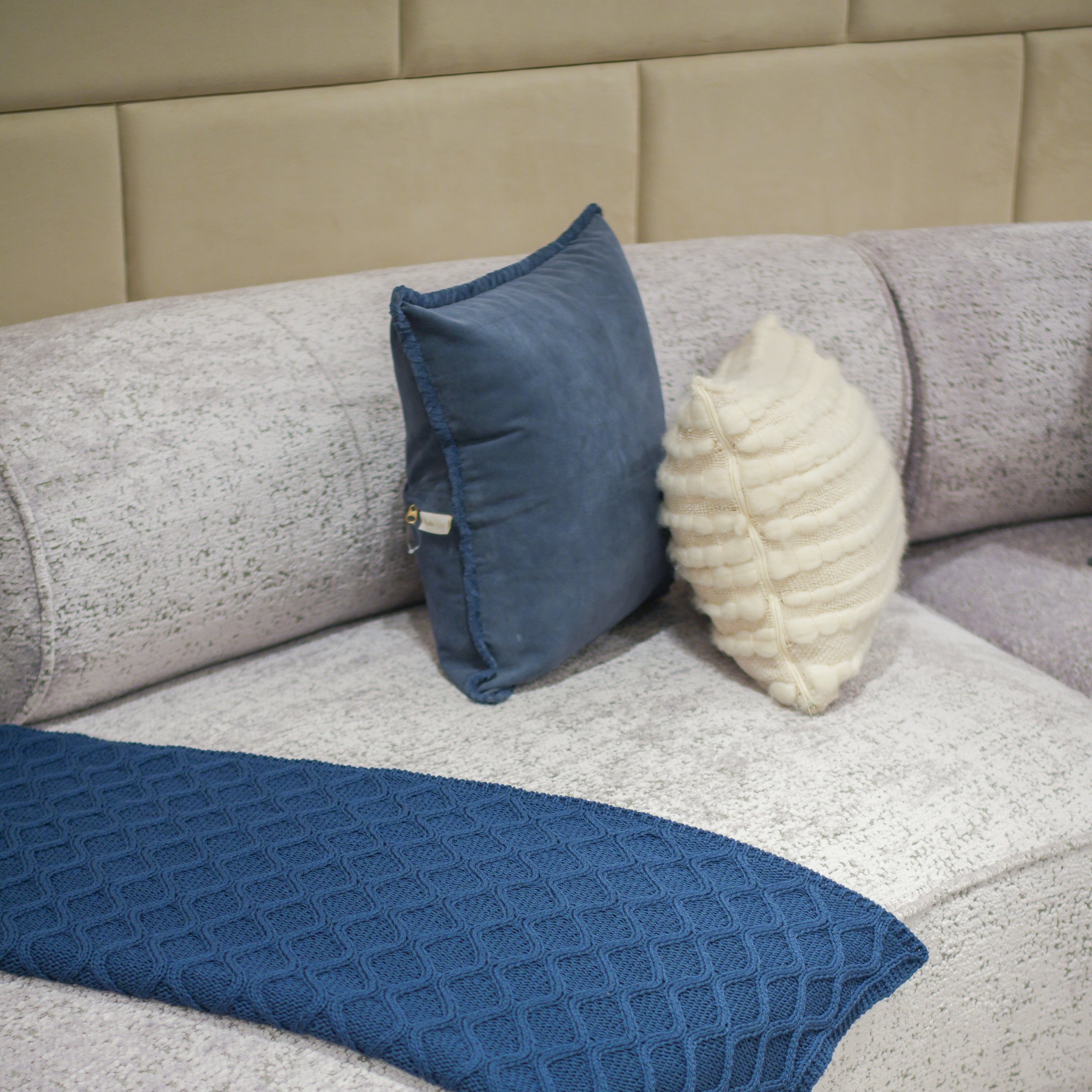 A Capa de almofada tranças é uma peça que se adapta em diversas combinações, já que todo seu entorno é todo trançado, além disso ela possui design clean e seu tom de azul é uma cor coringa e te possibilita a fazer mix com outras cores mais fortes, como laranja e amarelo, ou então um combinação com cores mais básicas como cinza e bege.