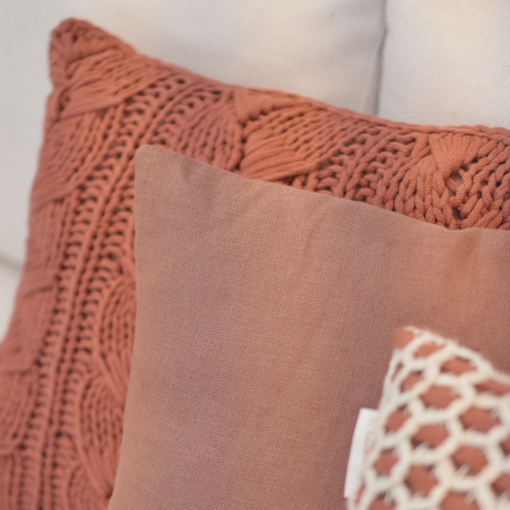 CAPA DE ALMOFADA LINHO PURO TERRACOTA 50x50CM