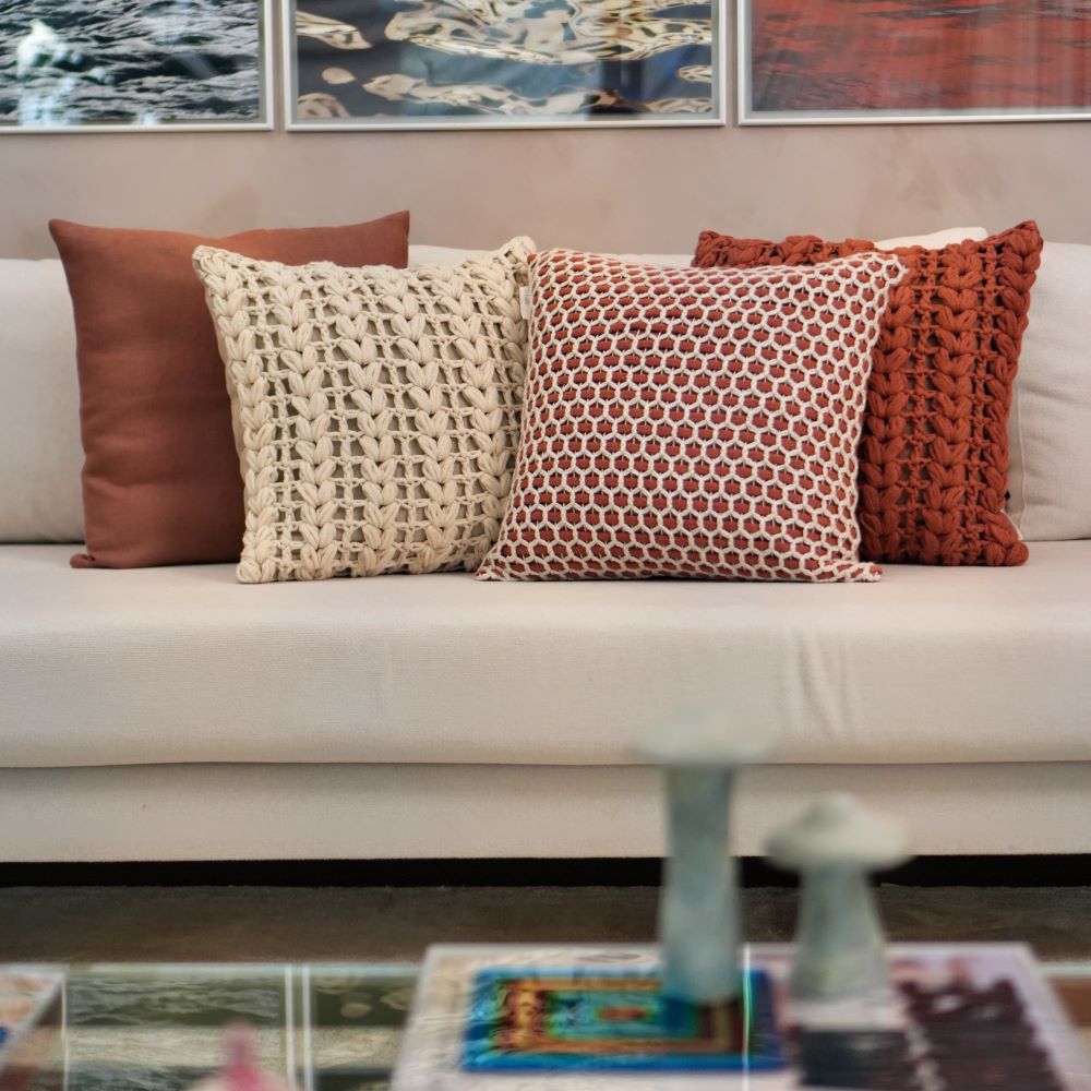 Para cuidar de almofadas de tricô com trançado, lave-as à mão com água fria e sabão neutro, evitando torcer para não deformar os pontos. Caso use máquina, opte pelo ciclo delicado e utilize um saco protetor. Deixe secar naturalmente, em superfície plana e à sombra, evitando a secadora para preservar as fibras.