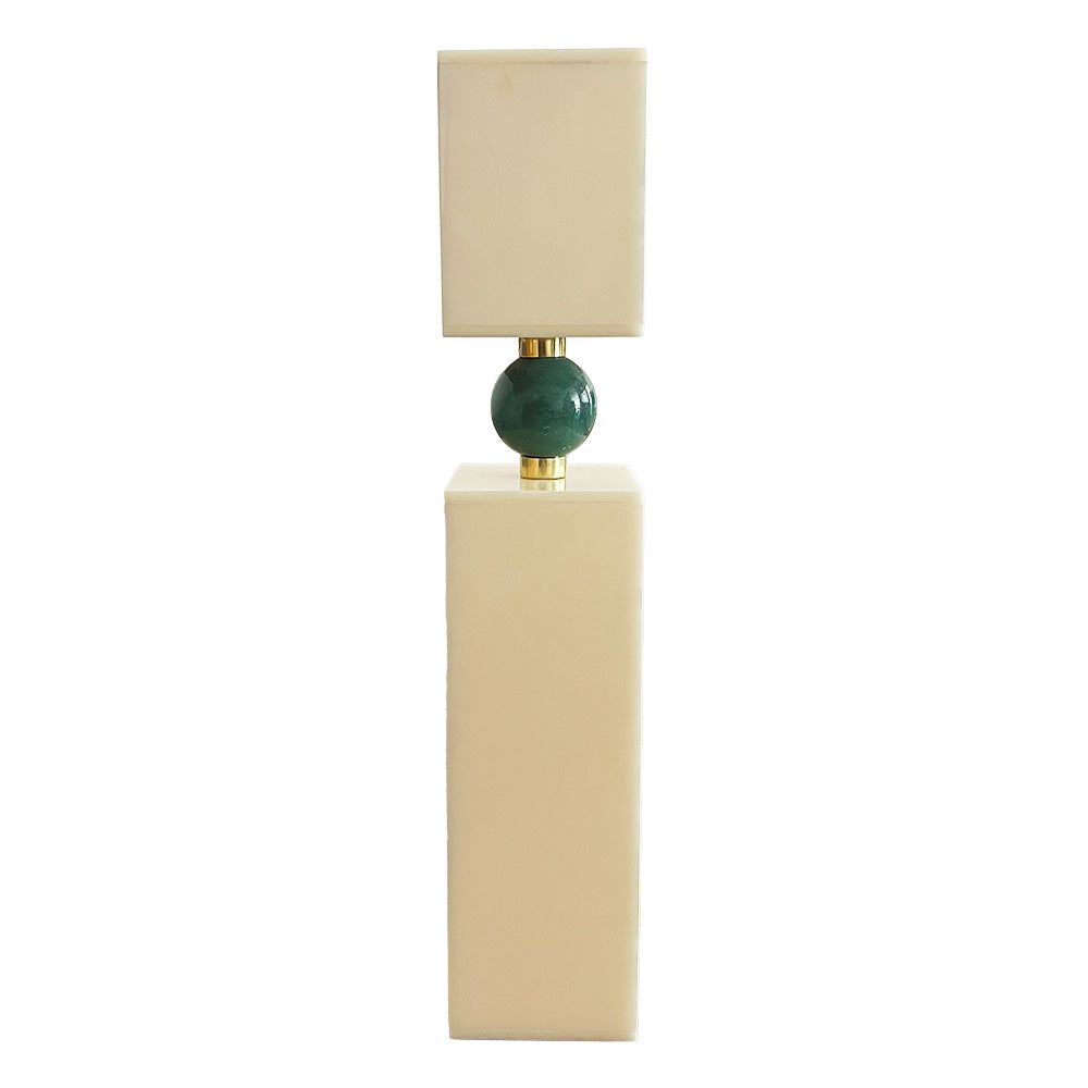 Material: Acrílico, quartzo verde e latão banhado a ouro.