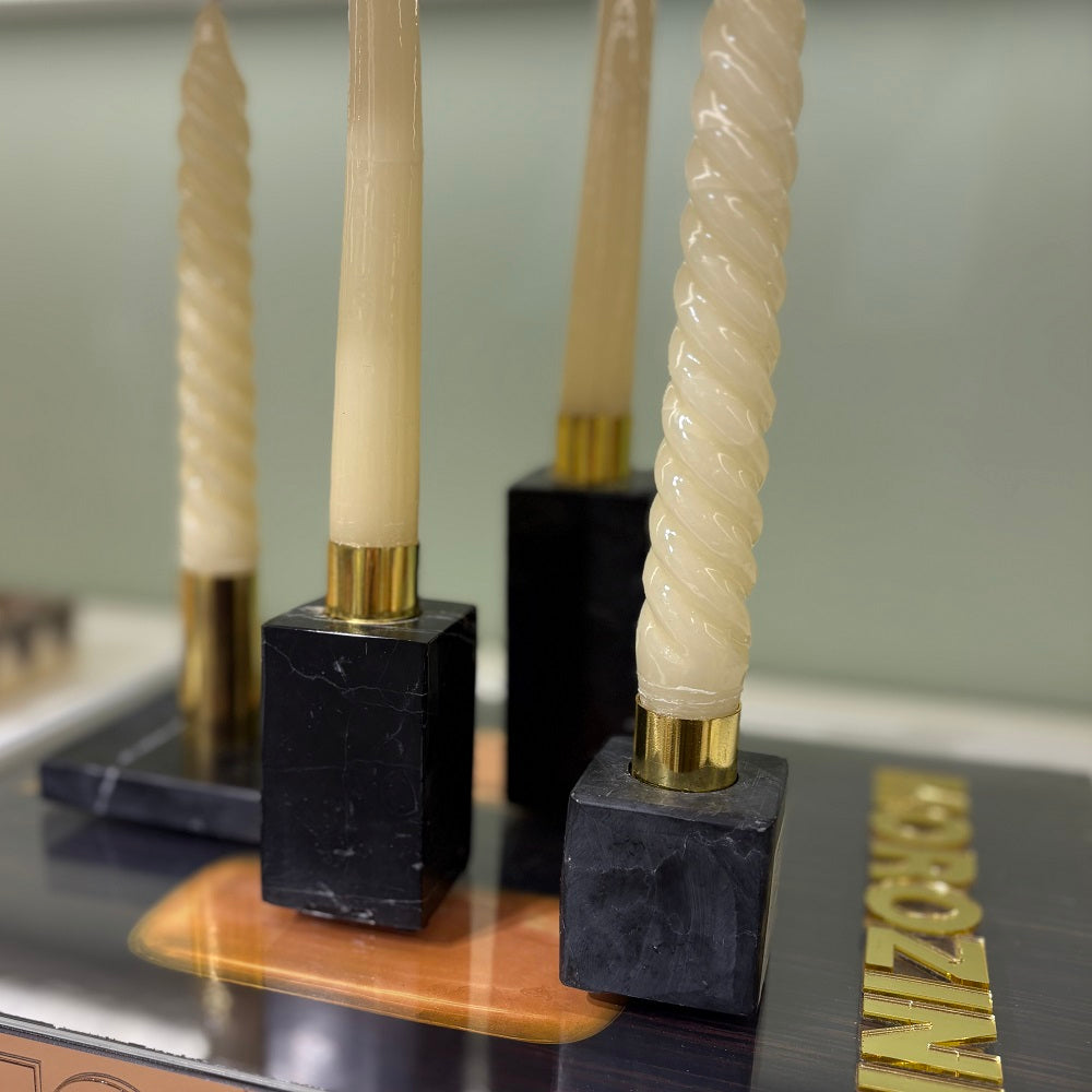 O castiçal e mármore é uma peça moderna e cheia de personalidade que vai transformar a decoração da sua casa. Feito em mármore preto, cada peça ganha nuances de cores diferentes, o que deixa o castiçal ainda mais singular, ele pode ser usado tanto na mesa posta, quanto em outros ambientes, seu tamanho permite a utilização de velas mais cumpridas, sem atrapalhar a visão.