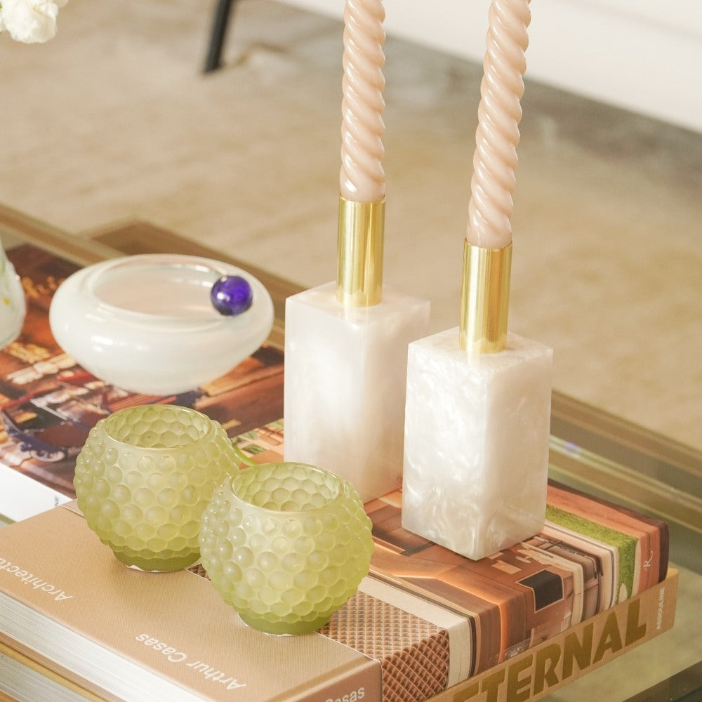 O castiçal de resina marmorizado branco é uma peça que veio para transformar a sua casa. Ele é feito de resina e o suporte para velas é em metal dourado, o que traz ainda mais elegância para o item. Seu tamanho é perfeito pois se adequa perfeitamente em mesas de centro e prateleiras. Além disso, seu tom de branco é versátil e vai deixar o ambiente cheio de personalidade.