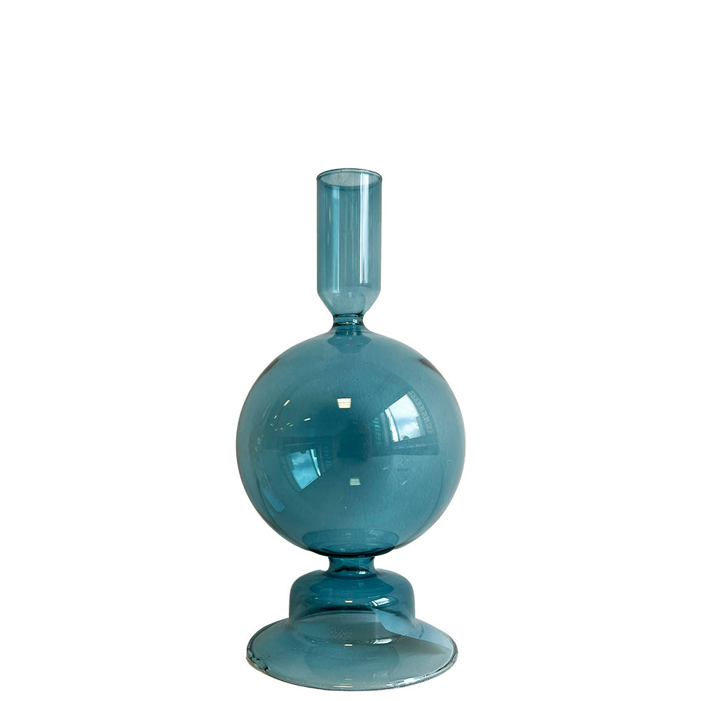 CASTIÇAL DE VIDRO BUBBLE AZUL CLARO 9 X 18,5(H) CM