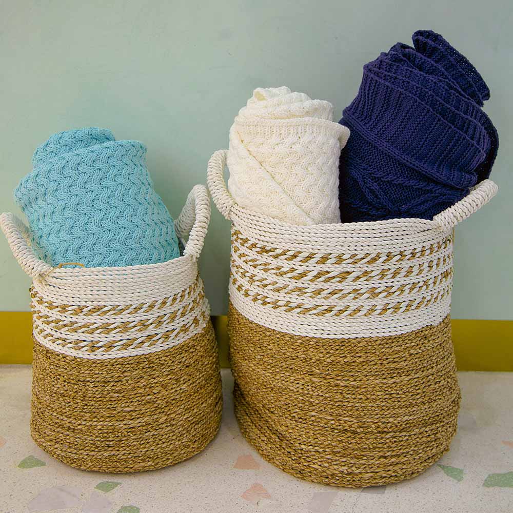 Este cesto é mais do que apenas um objeto decorativo. Ele pode ser utilizado como um prático item de armazenamento, ajudando a manter o espaço organizado e livre de desordem. Toalhas de praia, almofadas, mantas ou até mesmo brinquedos podem ser facilmente acomodados neste cesto.