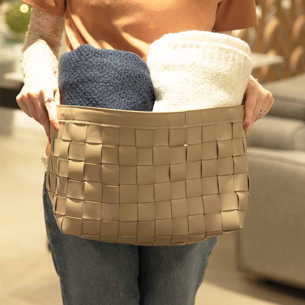 *Use este cesto na sala de estar para guardar mantas, almofadas decorativas ou revistas, mantendo o espaço sempre arrumado.