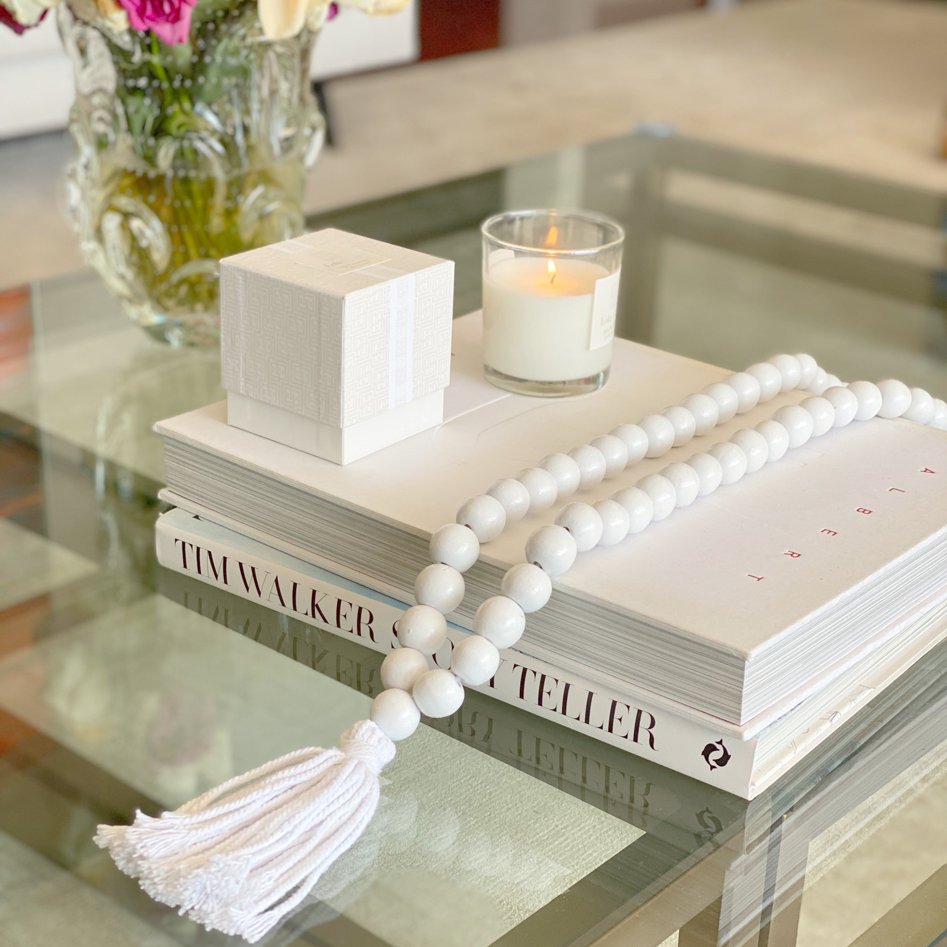 COLAR DE MESA MADEIRA TASSEL BRANCO 67CM