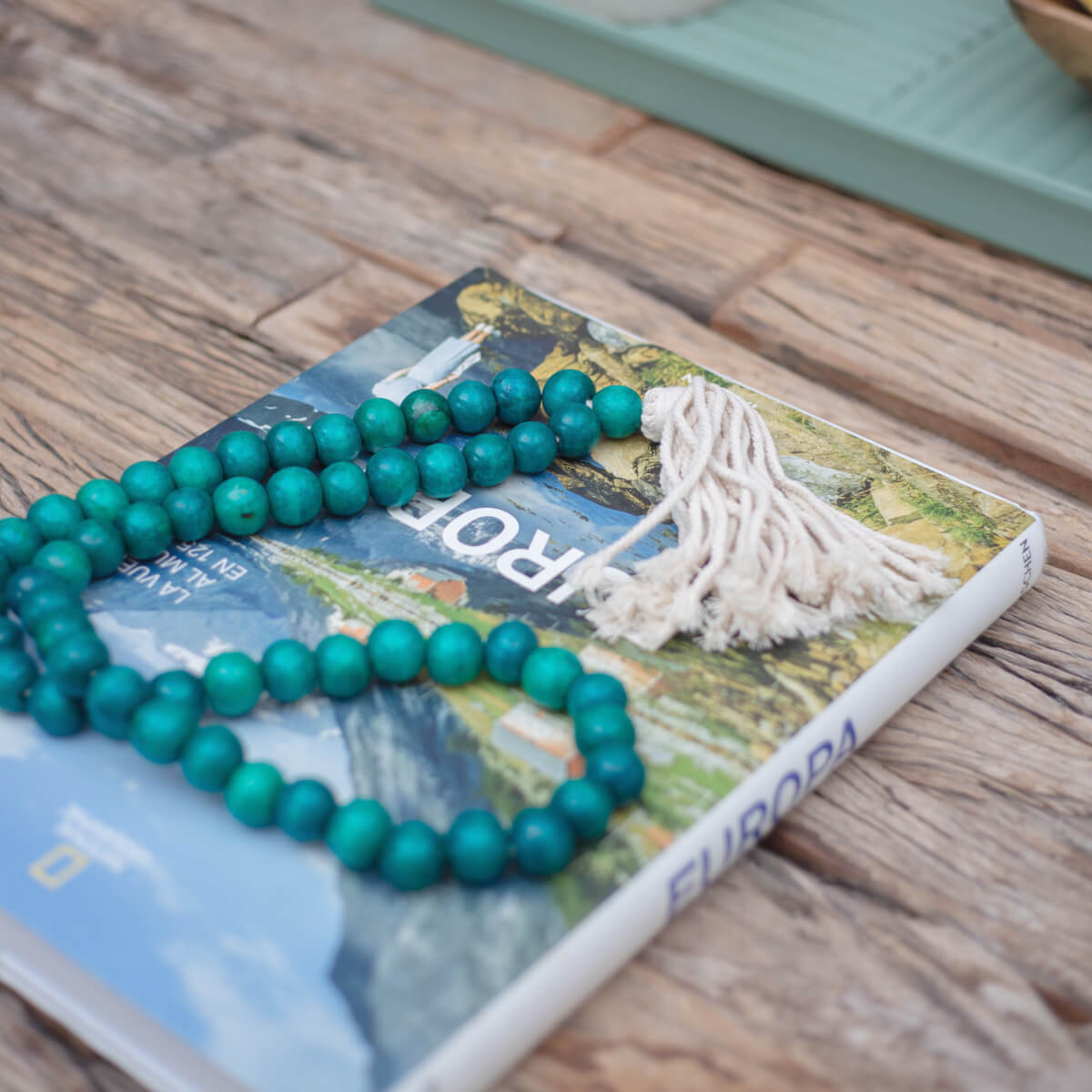 COLAR DE MESA MADEIRA TASSEL VERDE 67CM