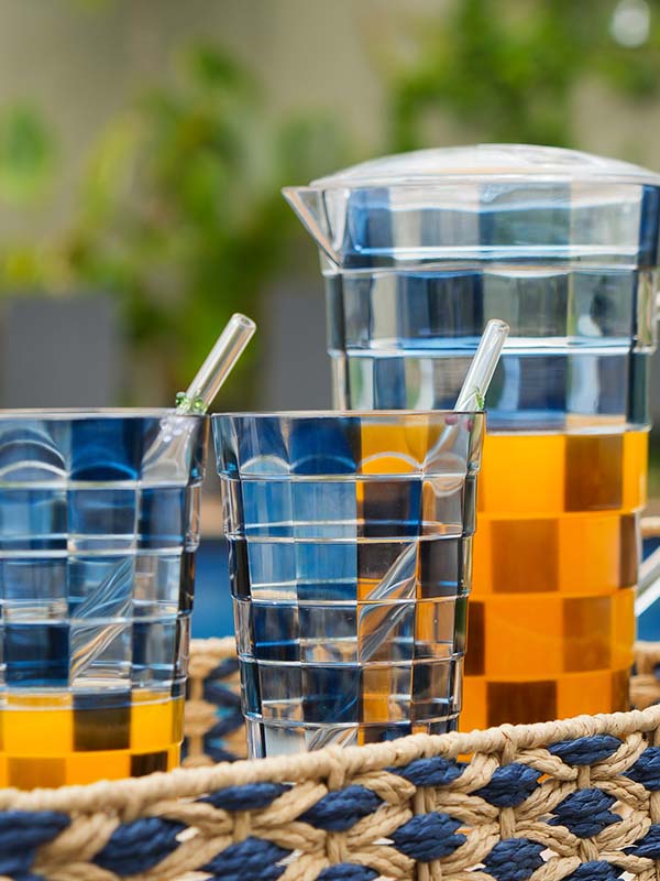O copo alto Check em acrílico é a peça ideal para servir com elegância e design sofisticado. Com sua resistência e relevo moderno, ele adiciona charme à sua mesa.