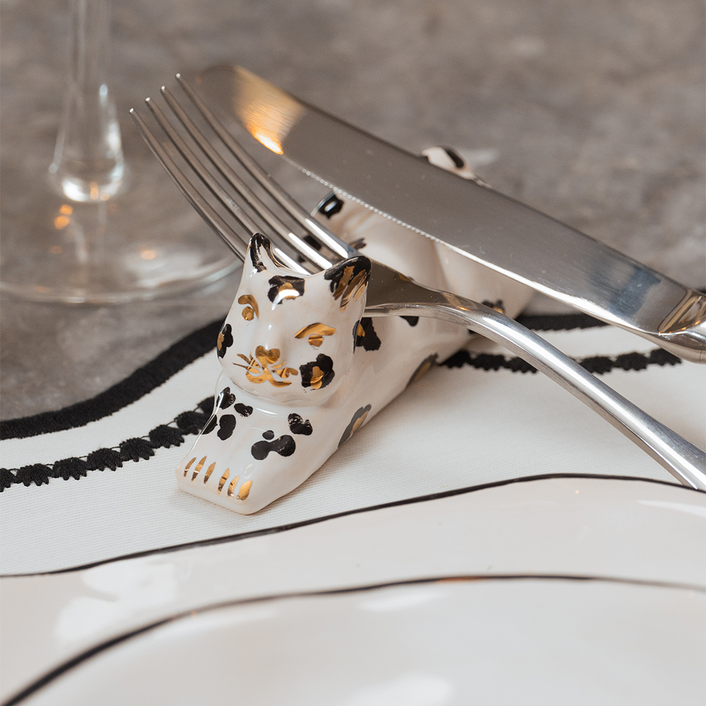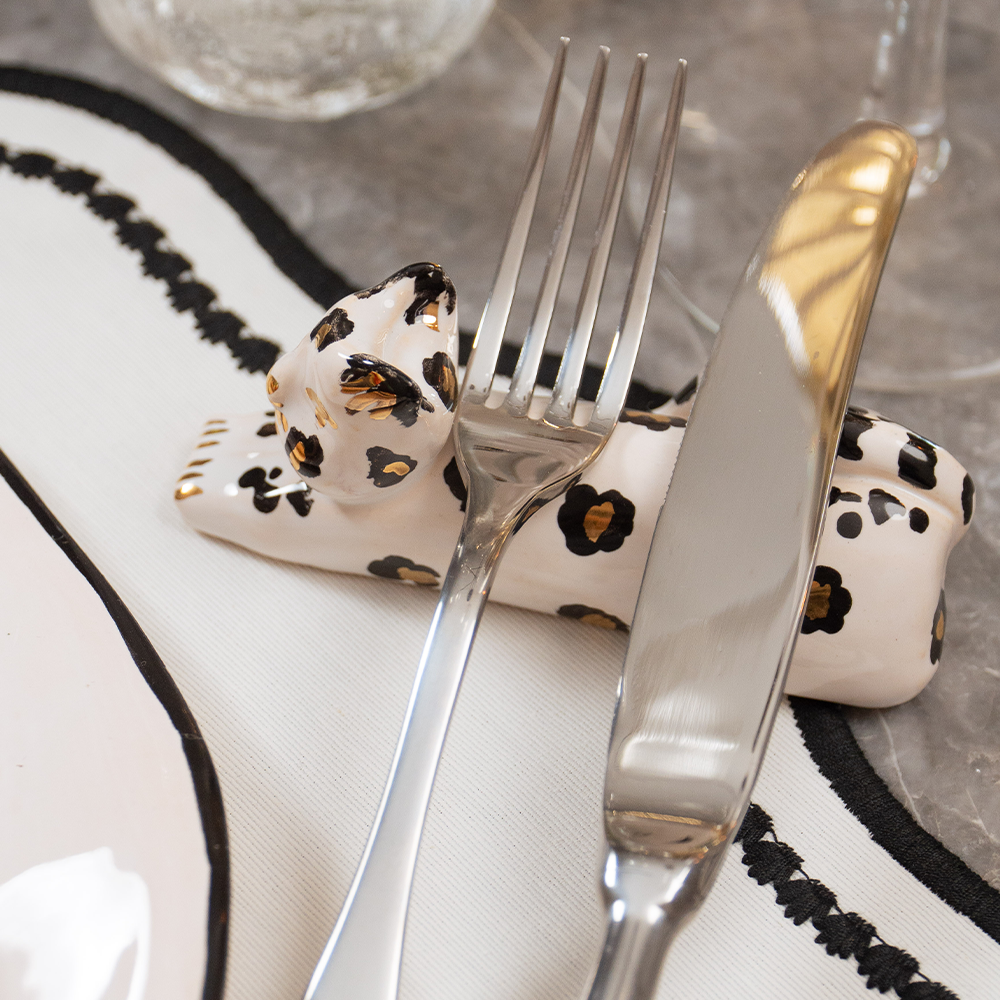 DESCANSO DE TALHER CERÂMICA ARTESANAL COM OURO LEOPARDO