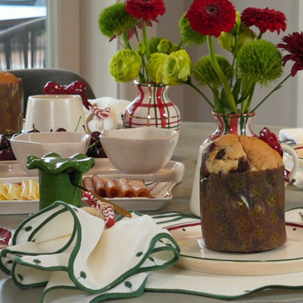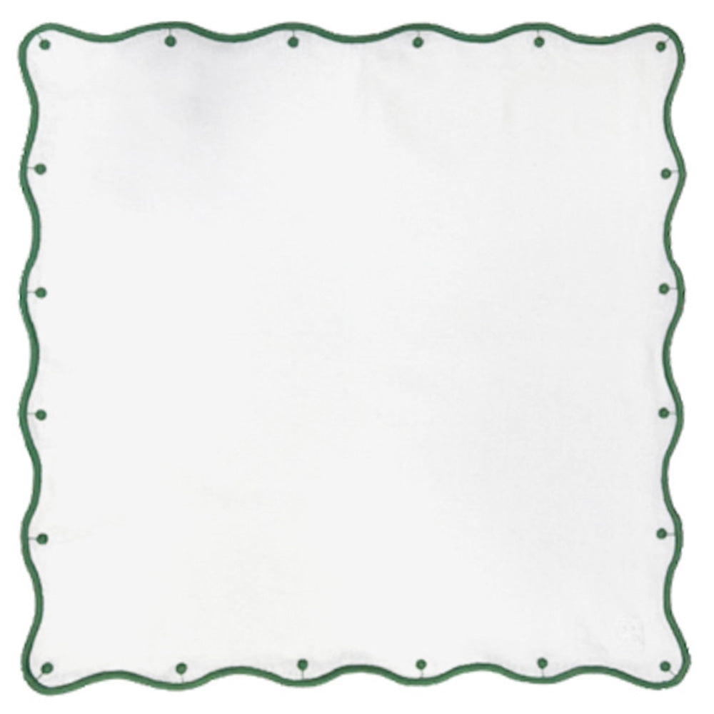 O guardanapo de linho exclusivo Lolahome possui um bordado impecável em bolinhas verdes. Peça versátil para a mesa posta, sendo chic tanto em celebrações de natal quanto em almoços casuais.