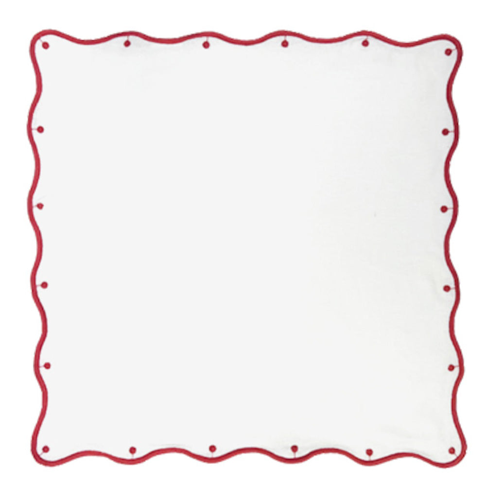 Este guardanapo de linho exclusivo Lolahome é grande com bordado impecável em bolinhas vermelhas. Peça atemporal e festiva, perfeita para criar uma mesa posta elegante para o natal e outros momentos chic.