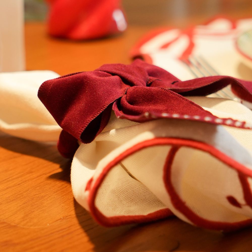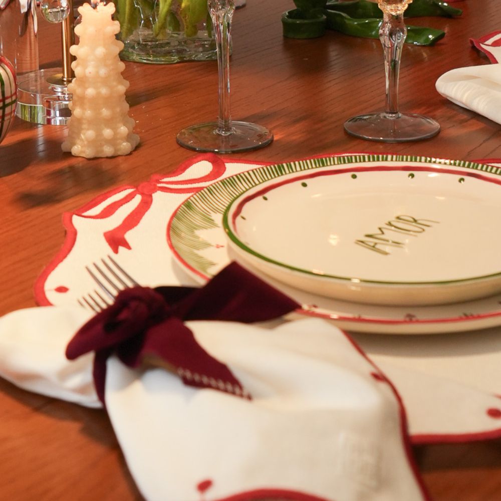 - Perfeito para a mesa posta de natal, o guardanapo de linho pode ser combinado com louças da coleção para realçar o bordado impecável em vermelho.