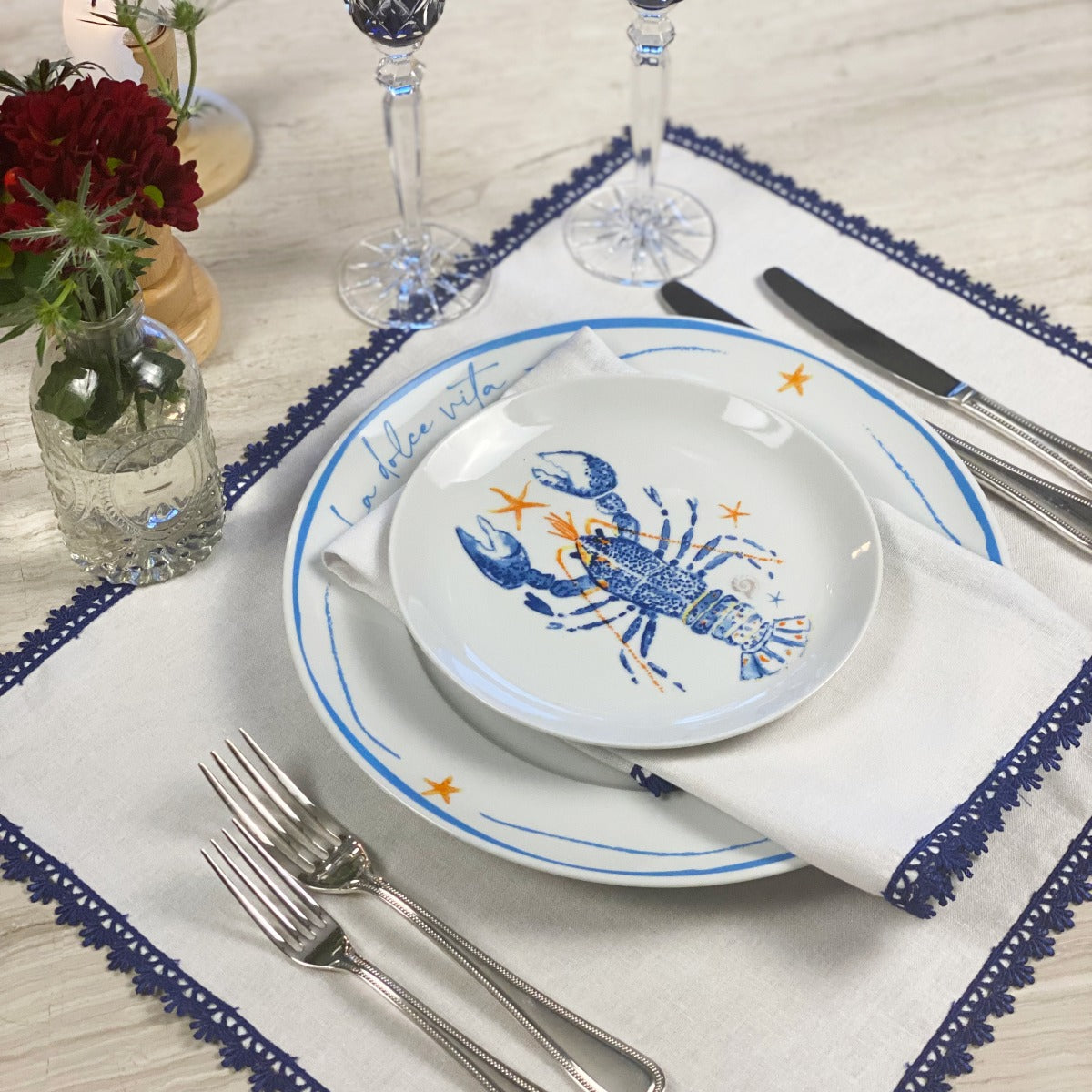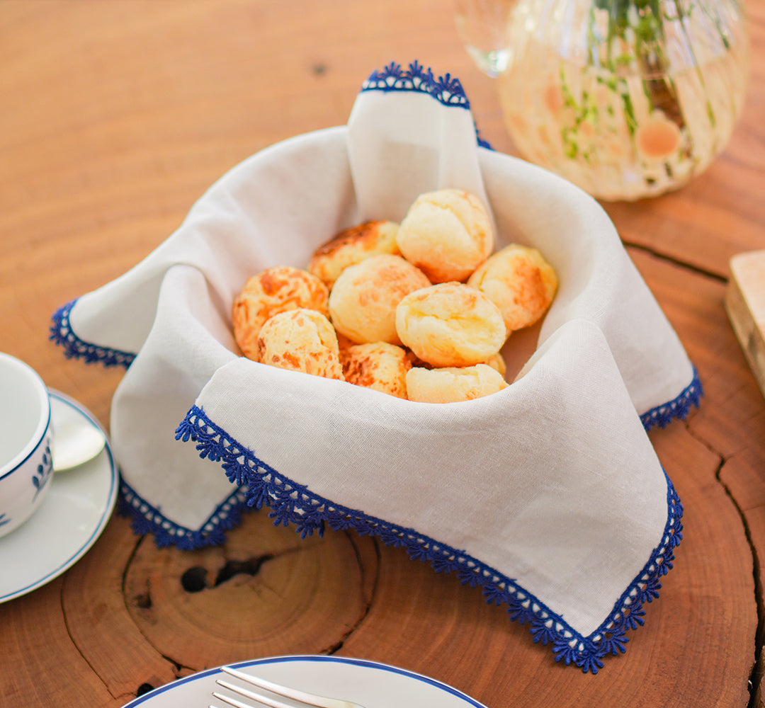 GUARDANAPO DE LINHO COM GUIPIR NINA AZUL 40X40 CM