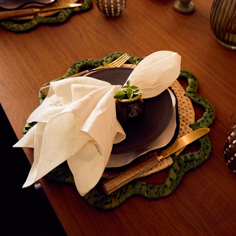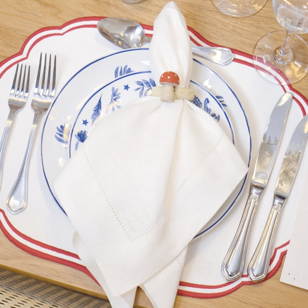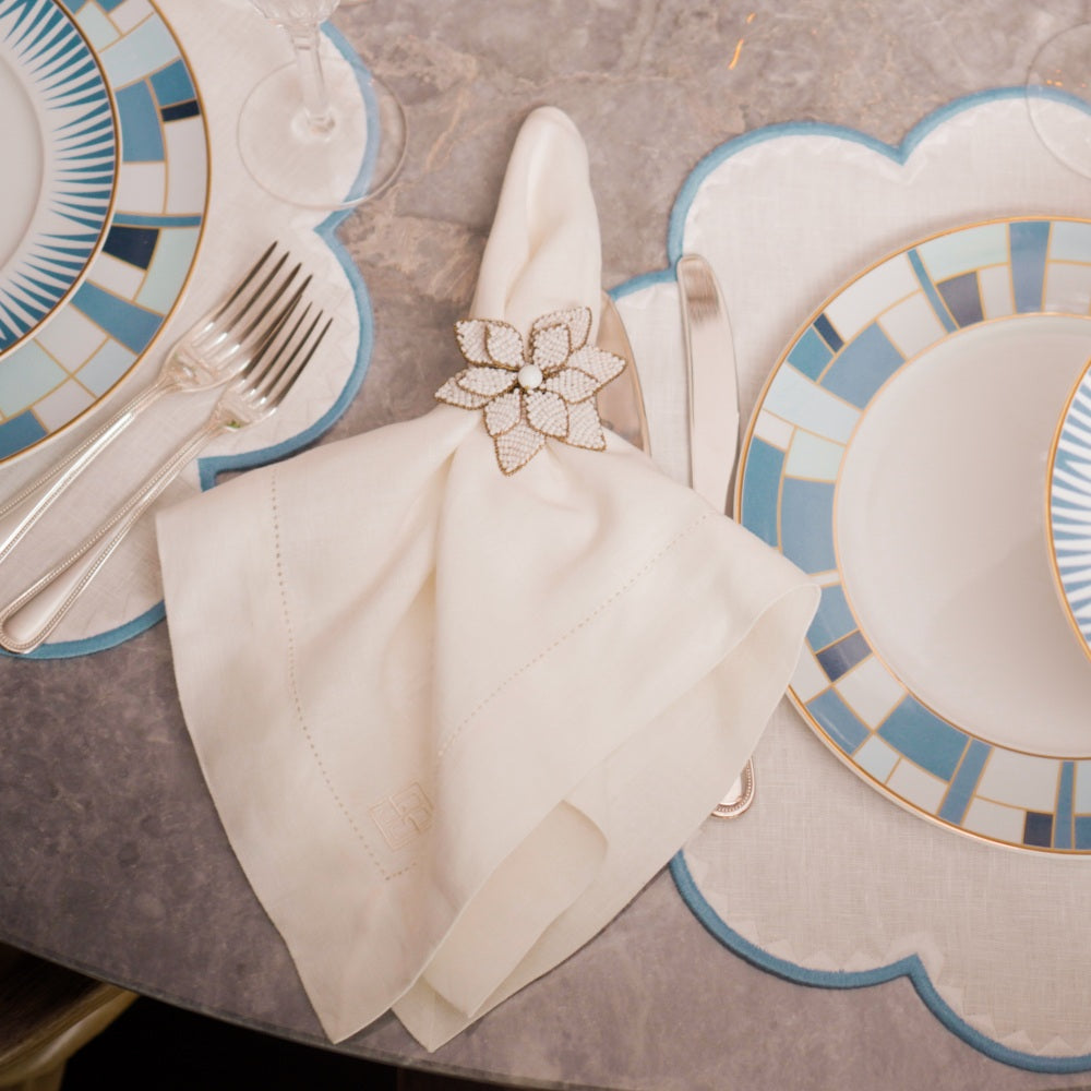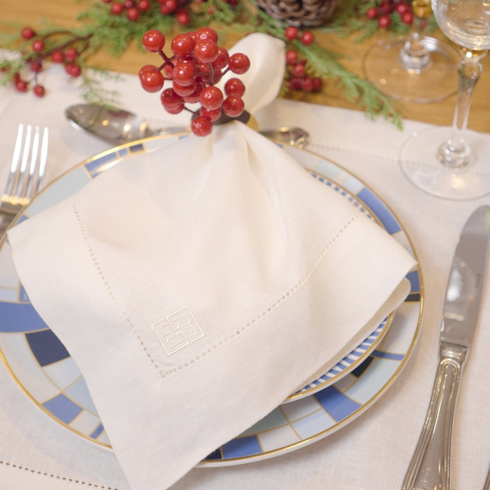 GUARDANAPO DE LINHO PURO BARRA LARGA PREMIUM OFF WHITE 55X55 CM