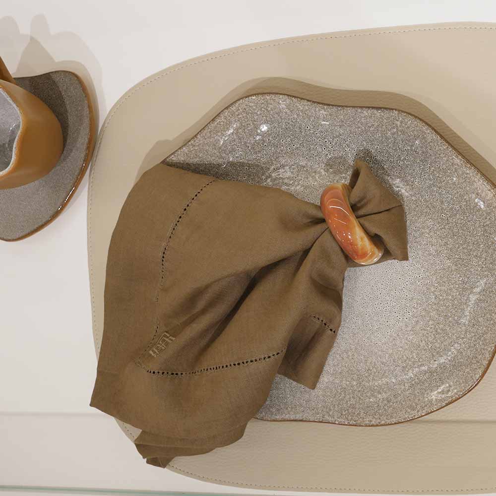 GUARDANAPO LINHO PURO BARRA LARGA PREMIUM MARROM 55X55 CM