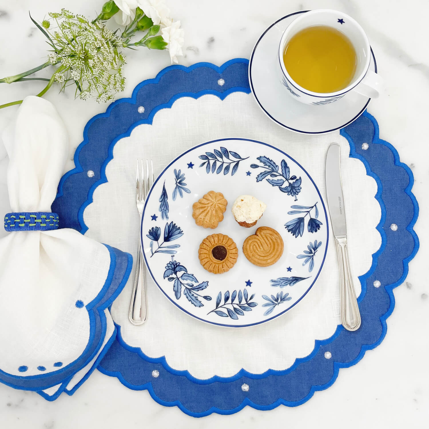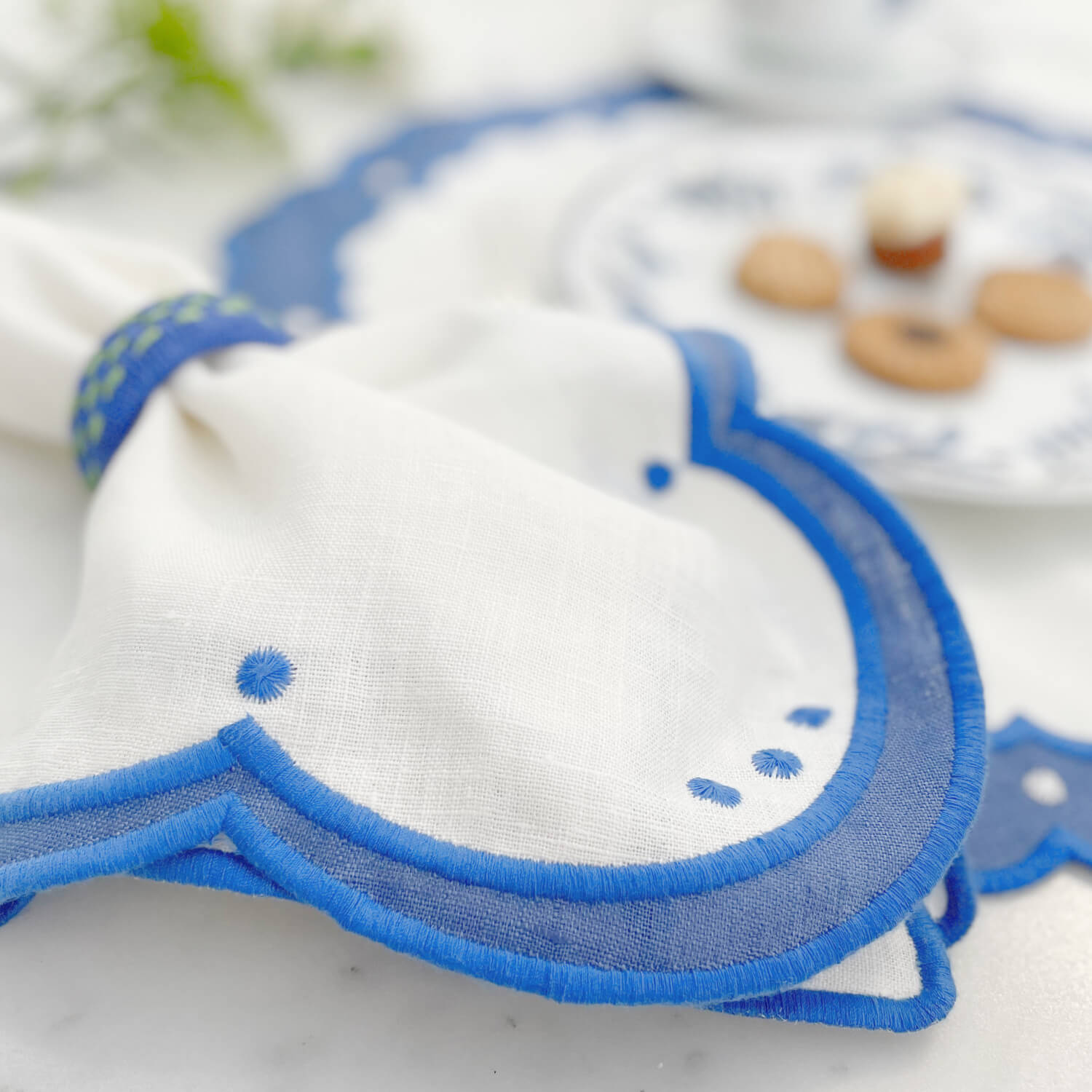 GUARDANAPO LINHO PURO ROYAL MARFIM E AZUL 50X50 CM