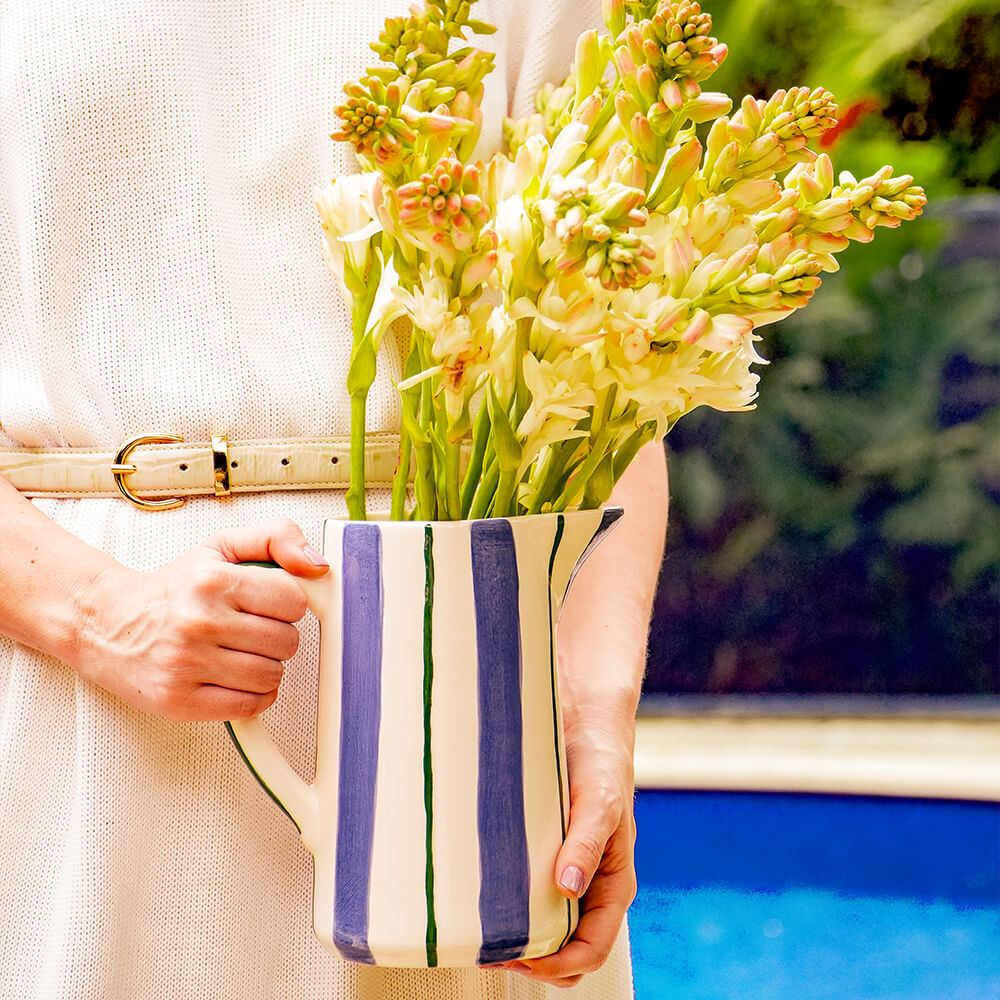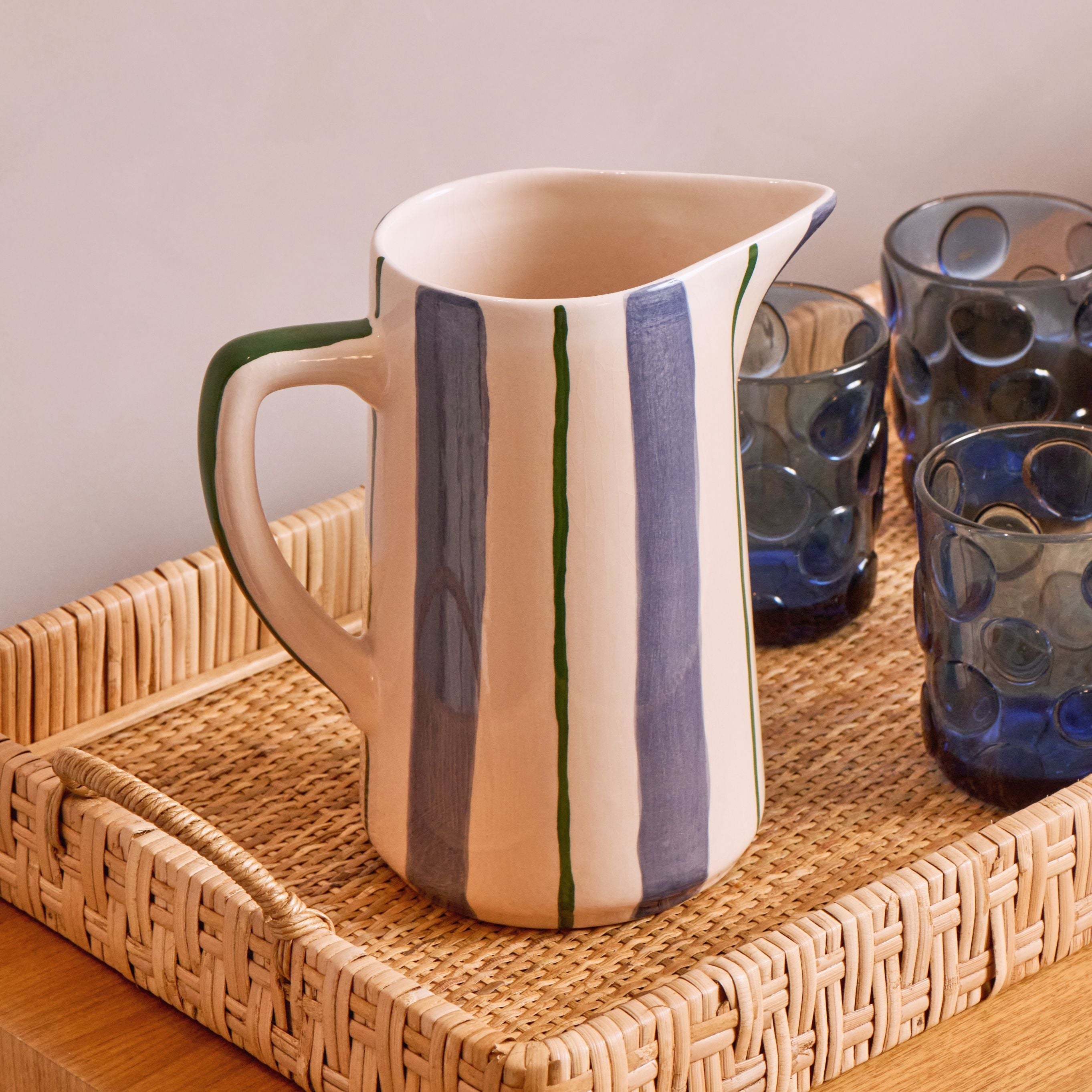 JARRA CERÂMICA ARTESANAL STRIPES AZUL E VERDE